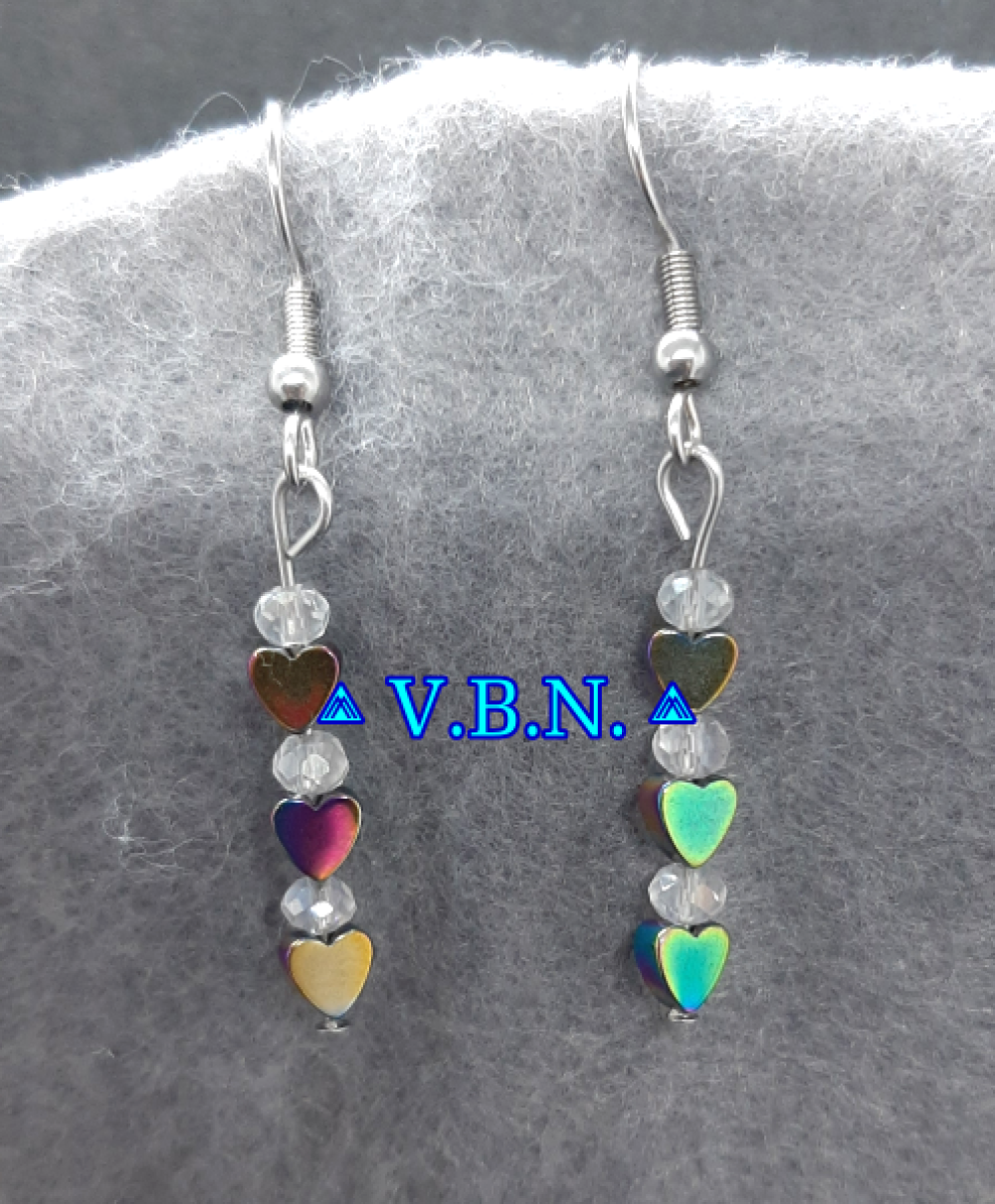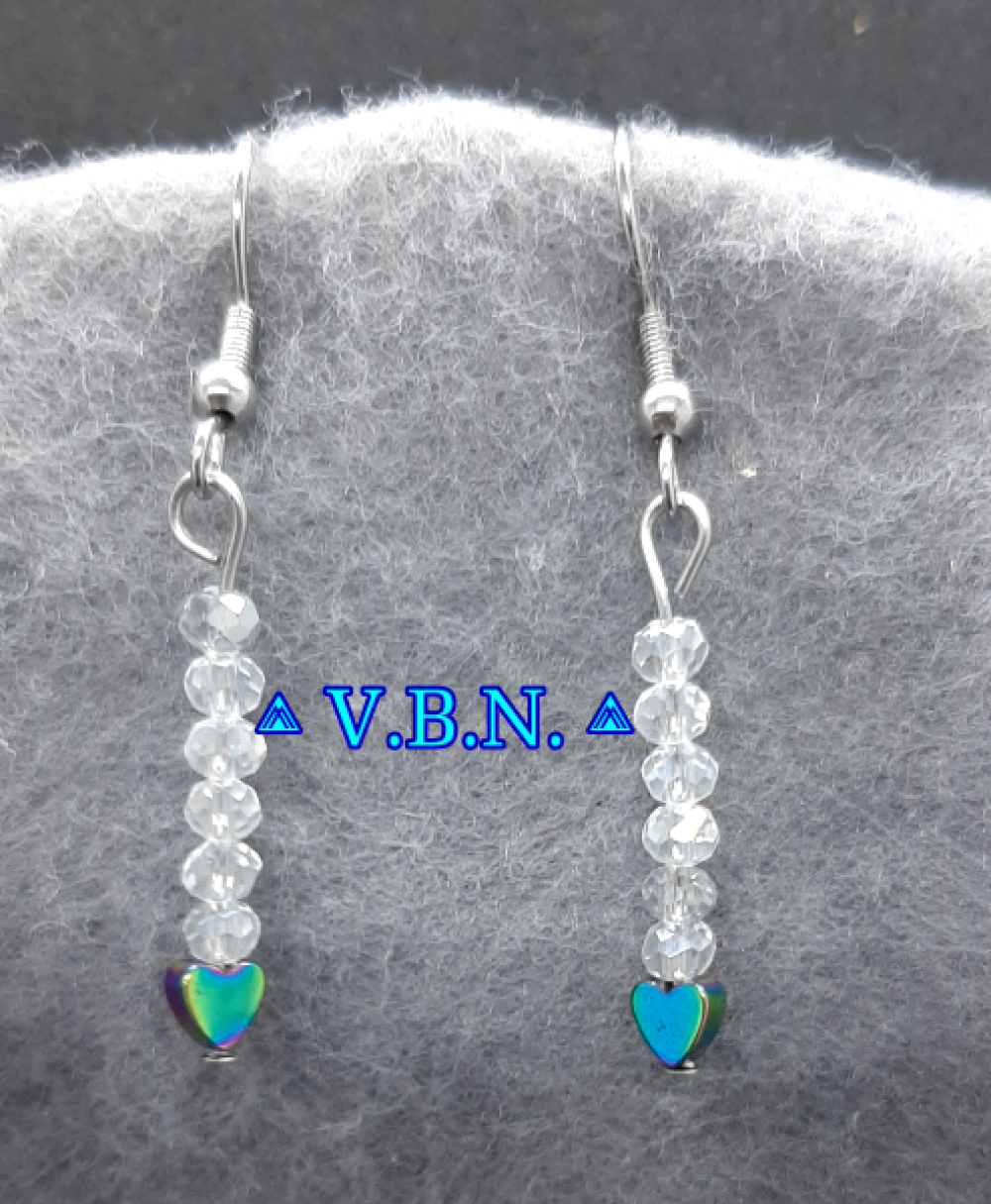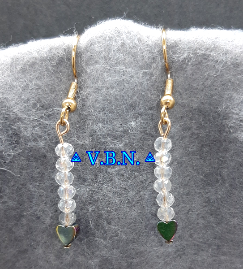 Petite boucles d'oreilles en coeur hématite avec ou sans les perles de cristal de verre -selon modèle-