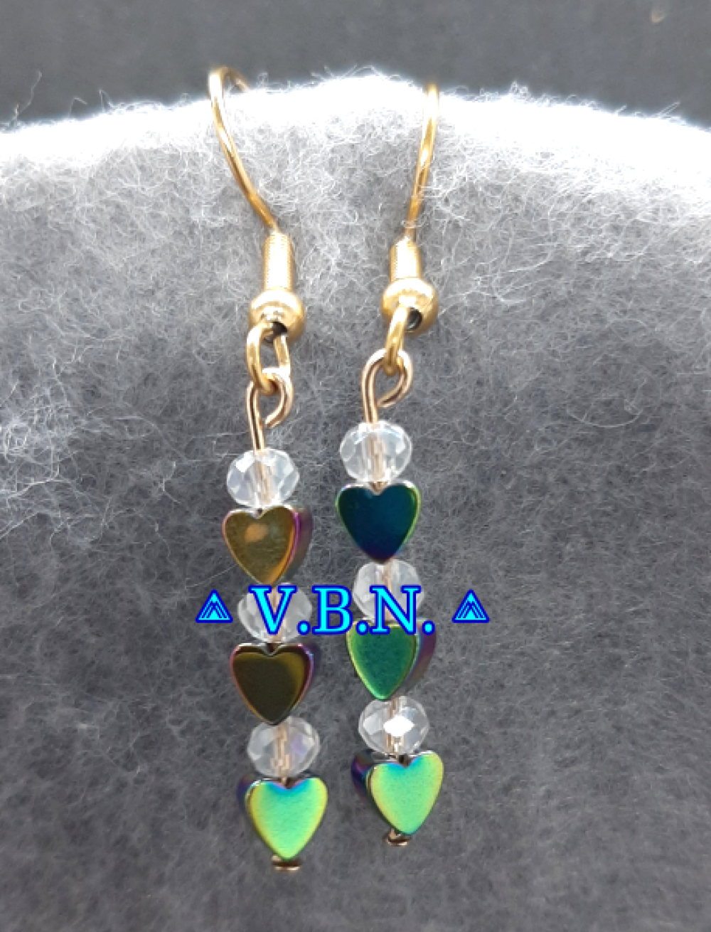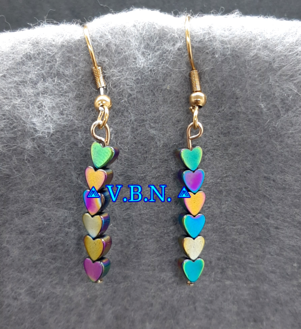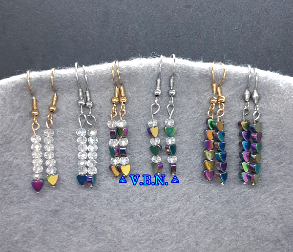Petite boucles d'oreilles en coeur hématite avec ou sans les perles de cristal de verre -selon modèle-
