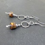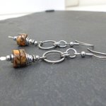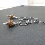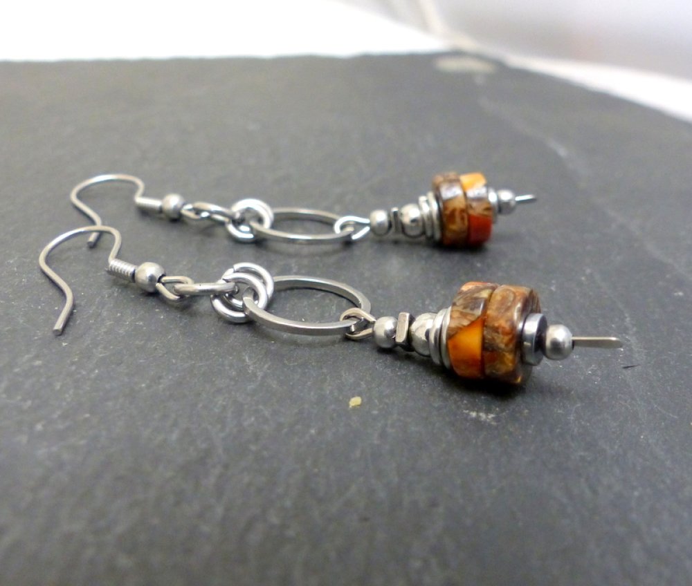 Petites boucles d'oreilles pierres naturelles, jaspe impérial, marron, orange, ocre. acier inoxydable