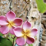 Plumeria rose, fleur de frangipanier - boucles d'oreilles pendantes