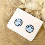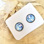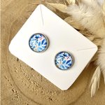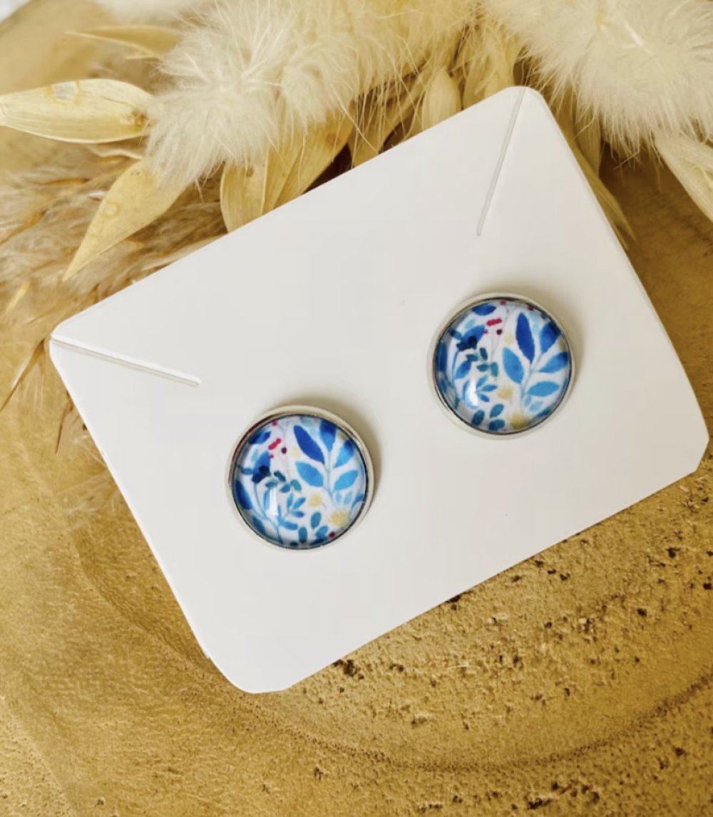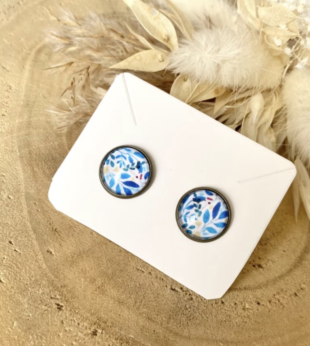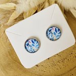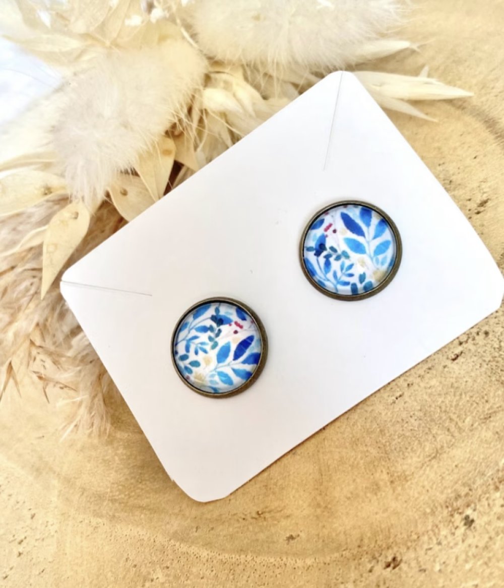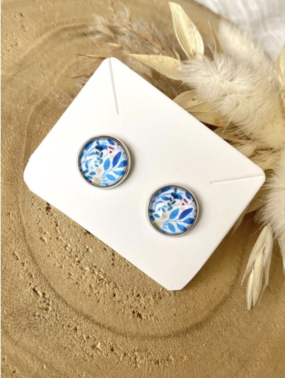 Puces cabochon fleurs bleues, clou d'oreille, BOucles D'Oreilles cabochons