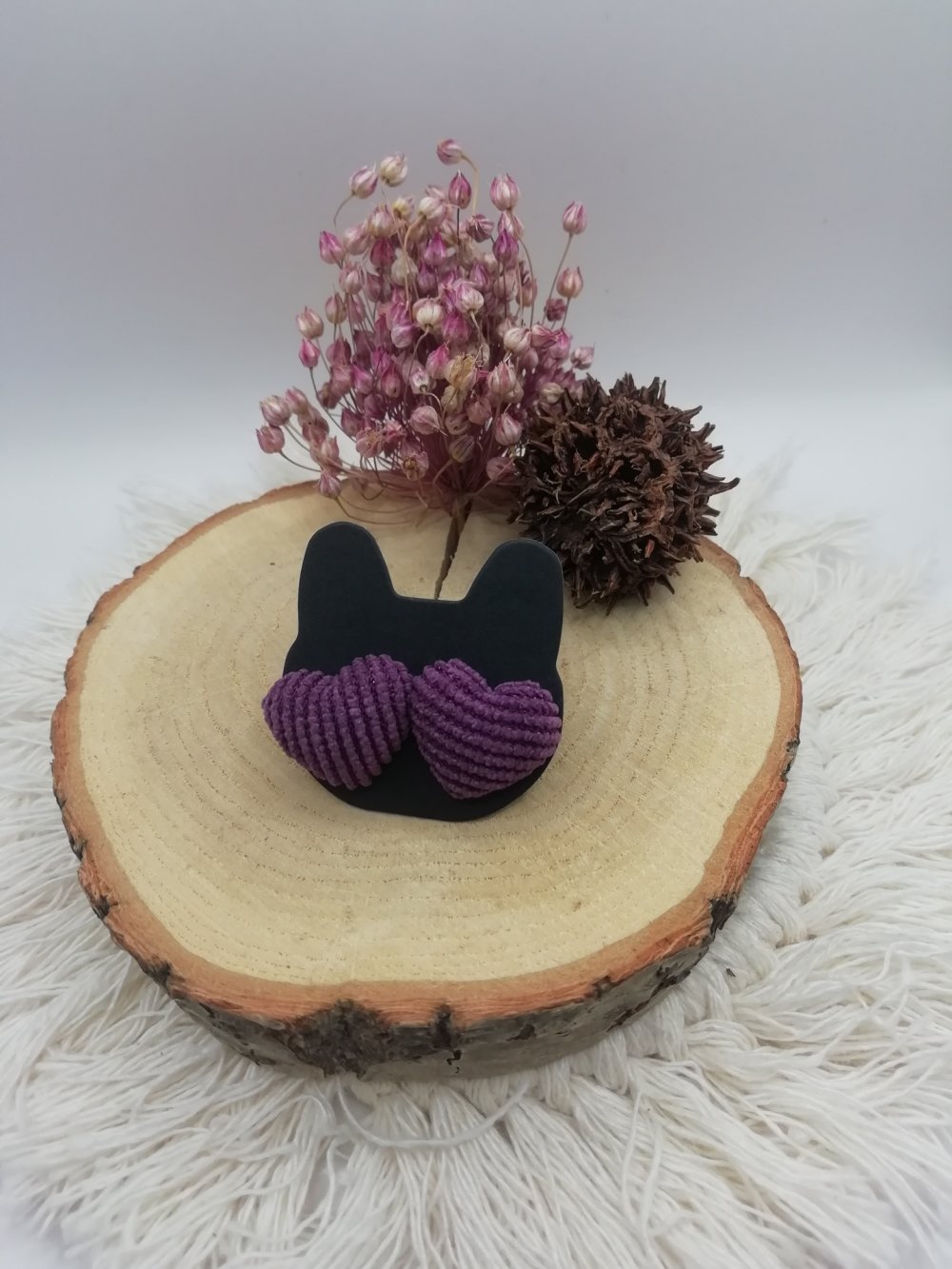 Puces d'oreilles tige et fermoir papillon, velours côtelé violet