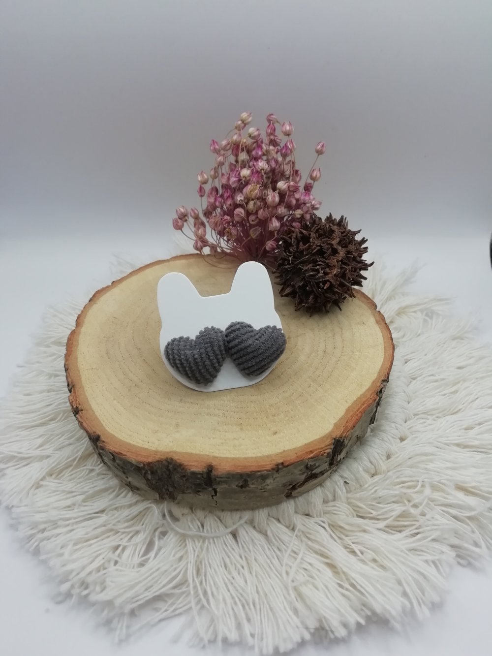 Puces d'oreilles tige et fermoir papillon, velours côtelé gris
