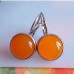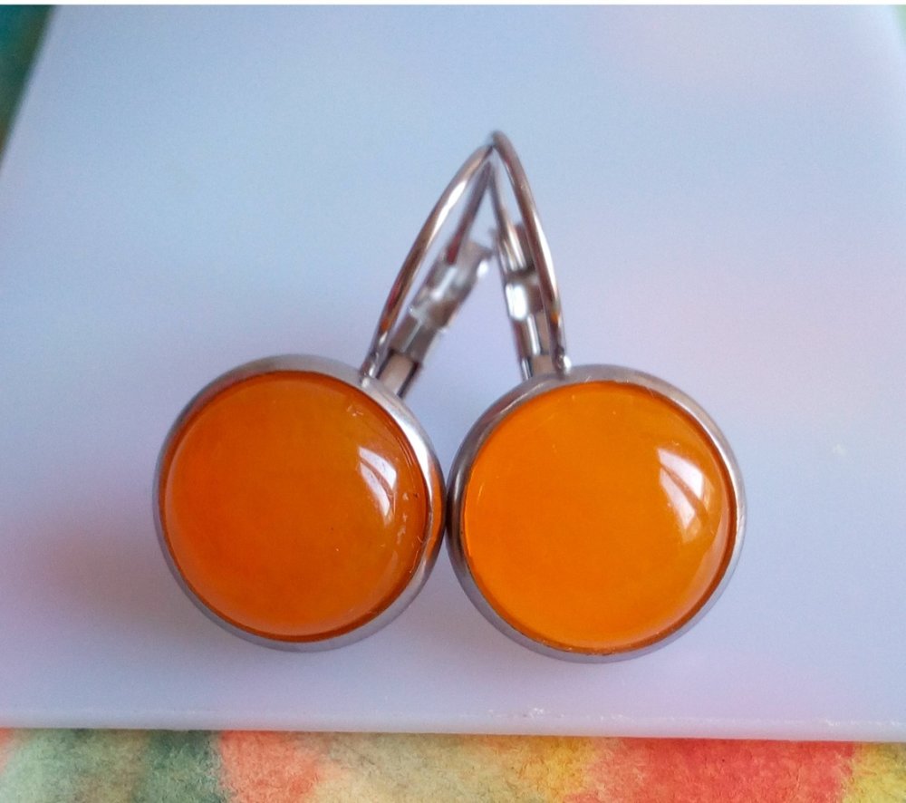 Quartz orange,dormeuses rhodiées,oreilles percées,cabochon rond 12mm,pierre fine precieuse,cadeau bobo boho gothique,fait mains en france,