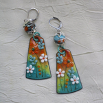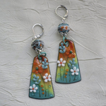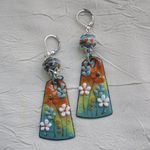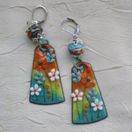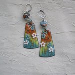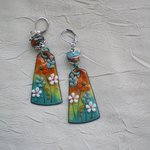 Boucles d’oreilles en cuivre émaillé et perles en Murano