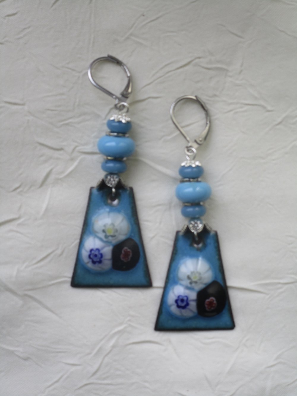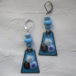 Boucles d’oreilles en cuivre émaillé et perles en Murano