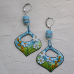 Boucles d’oreilles en cuivre émaillé et perles en Murano