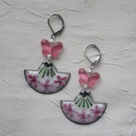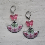 Délicate et ravissante paire de boucles d’oreilles composées de charms en cuivre émaillé, d’une perle de Murano de Créatrice montées sur dormeuses en métal argenté à l’aide d’accessoires en métal argenté