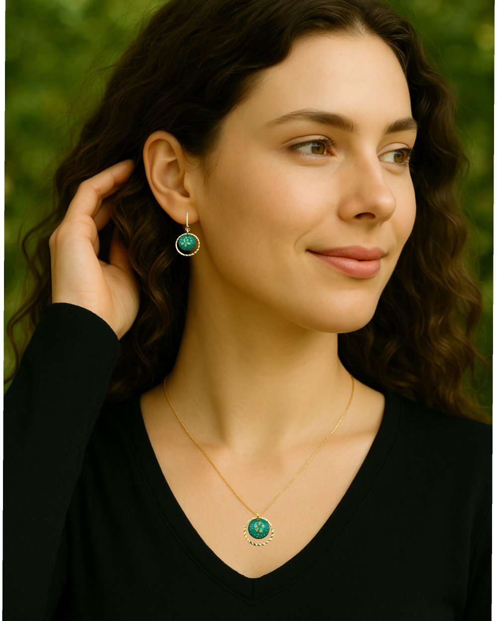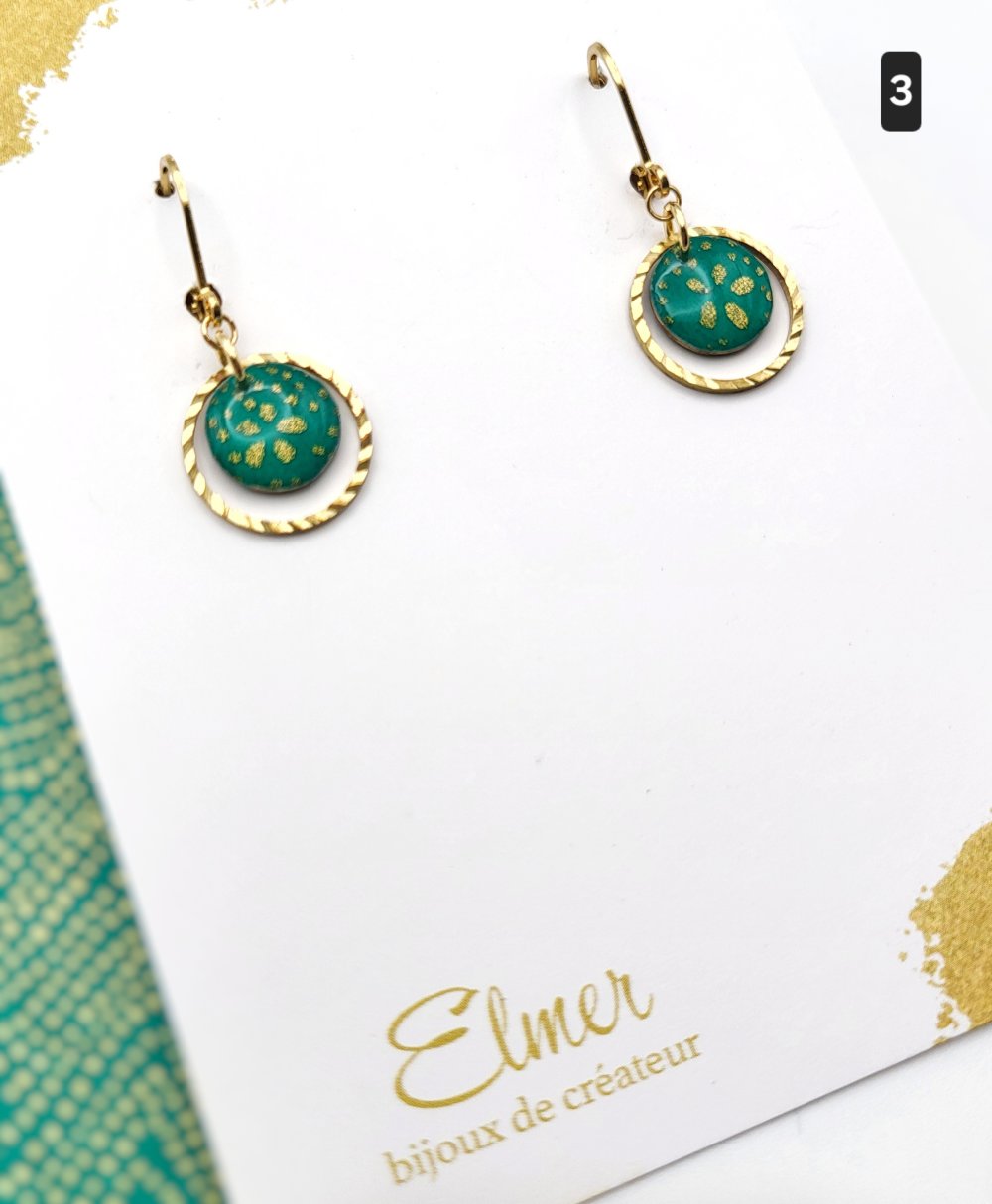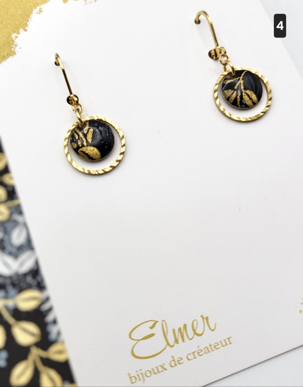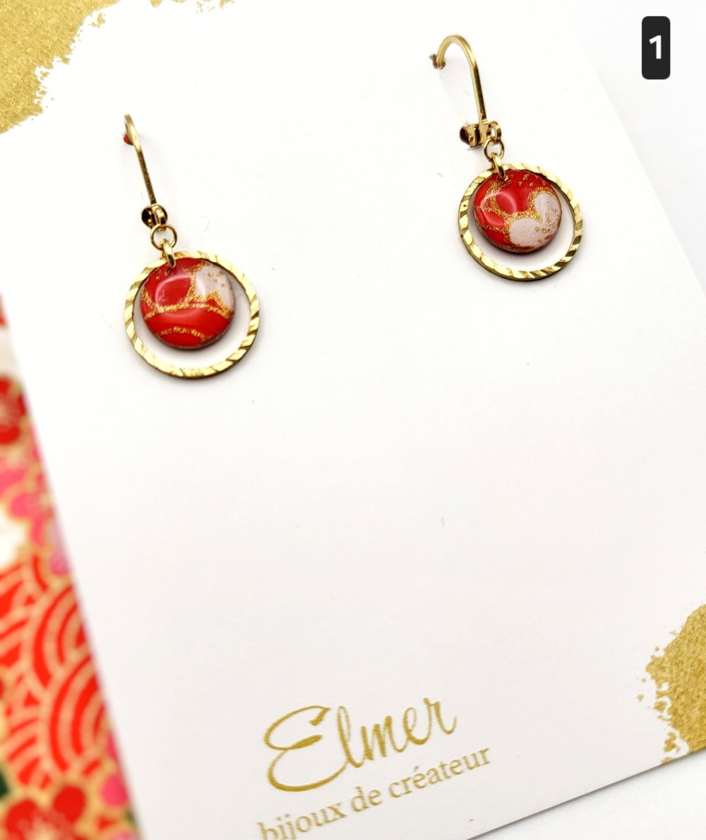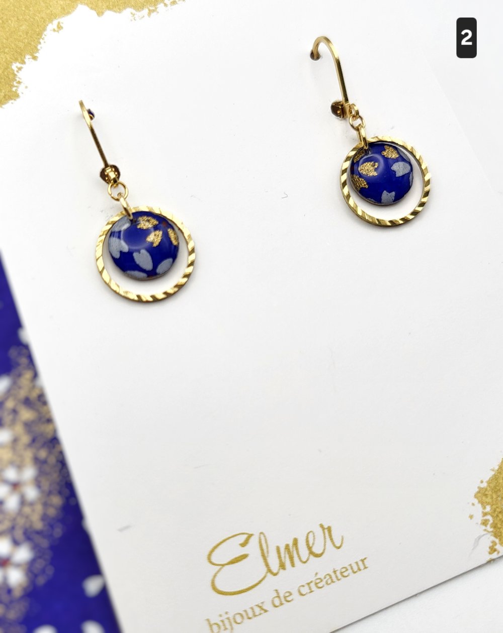 Leur pampille ronde en papier washi japonais, protégée par une fine résine, est mise en valeur par un fin anneau doré à l’or fin pour un rendu raffiné.