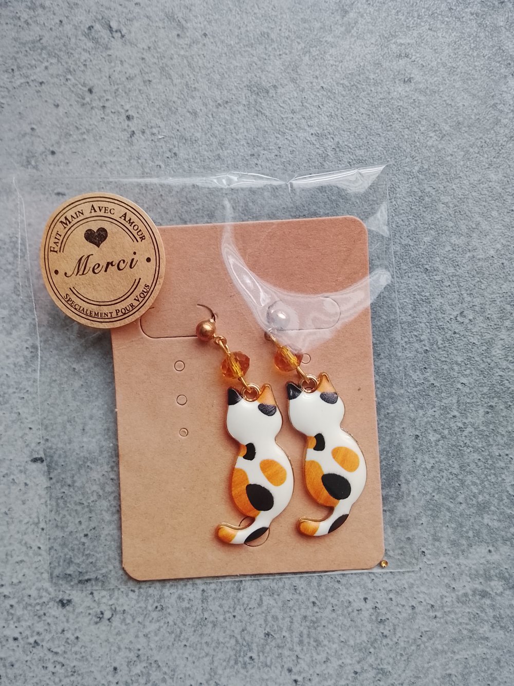 boucle d'oreilles chat silhouette en émail avec perle en verre