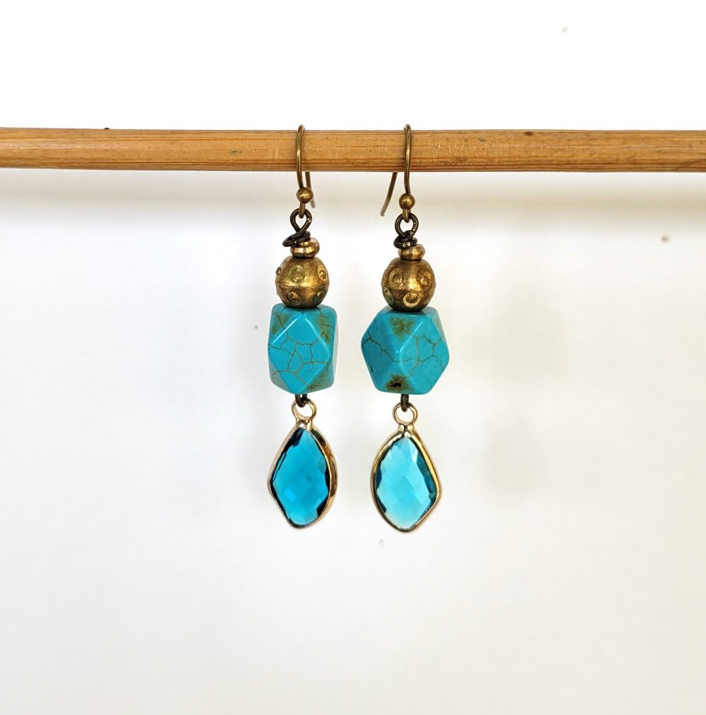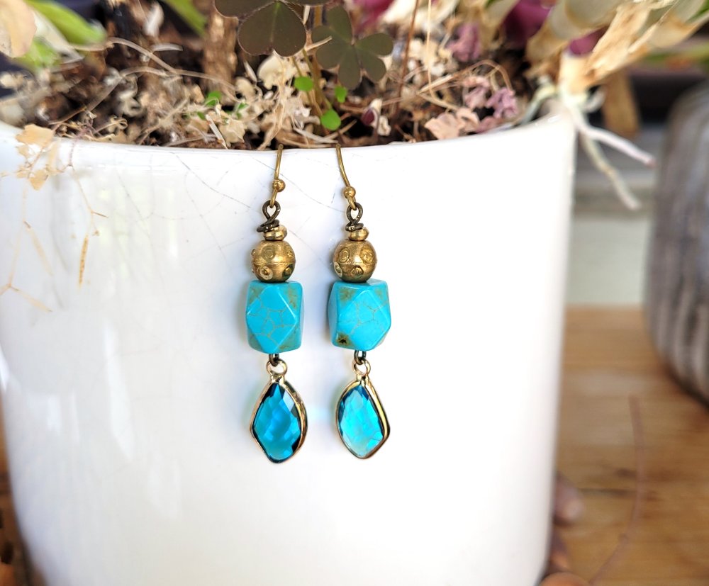 "Jardin Des Songes" : Un petit prix pour ces boucles d'oreille romantiques avec perle turquoise et breloque verre enchâssé dans bronze