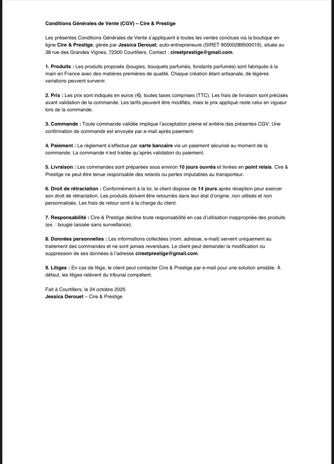 Passionnée par la création artisanale, je fabrique avec amour des bouquets parfumés, bougies et fondants parfumés à partir de matières premières françaises.