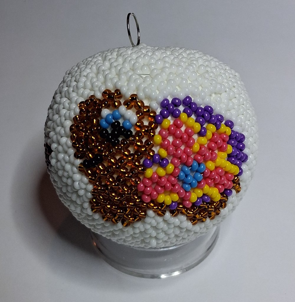 Boule tortue de 6 cm de diamètre réalisée avec l'aide de mes perles.