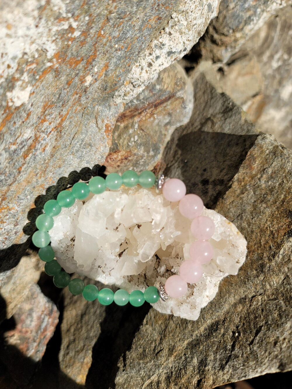 Bracelet " Amour et Tranquillité " en Aventurine et Quartz rose fait main idée cadeau pierre naturelle