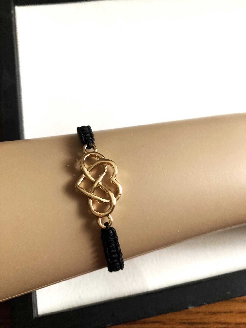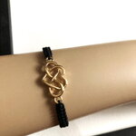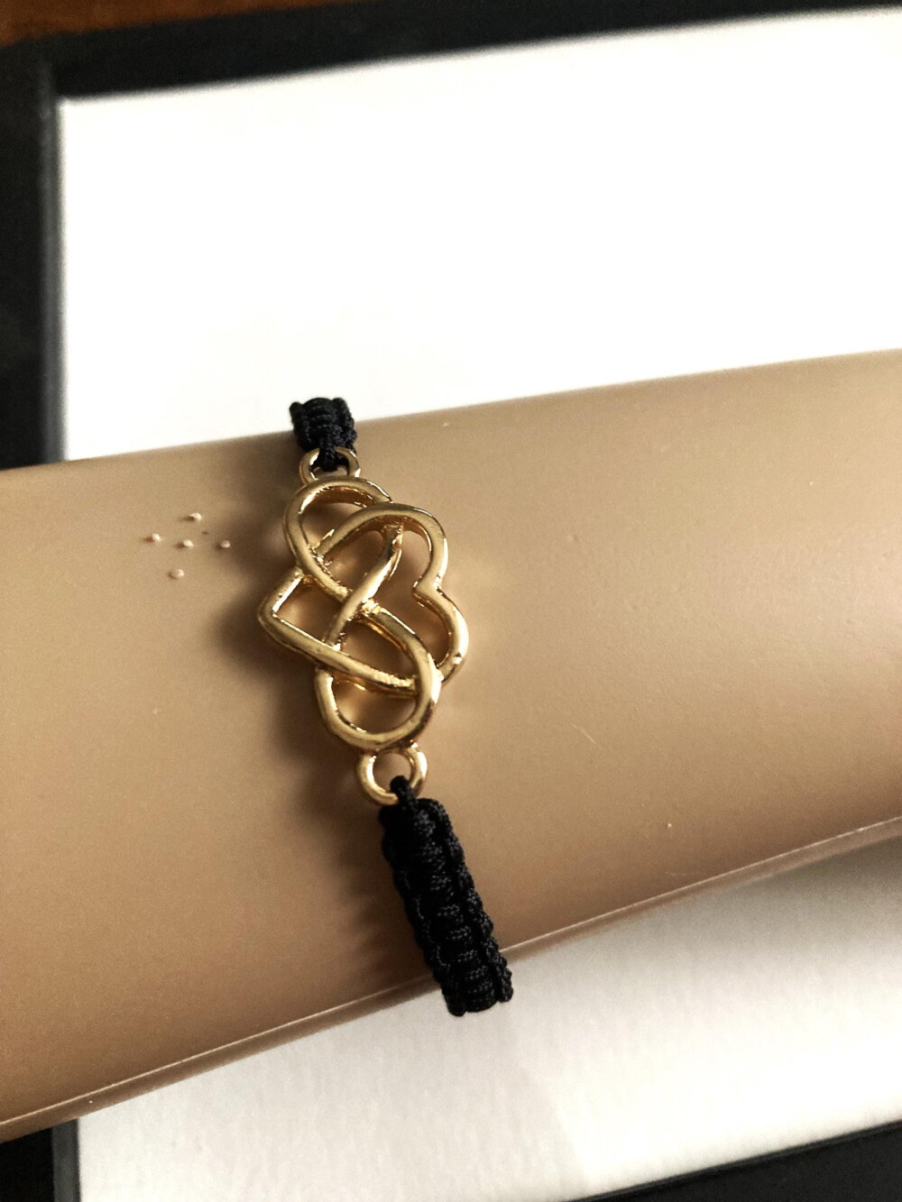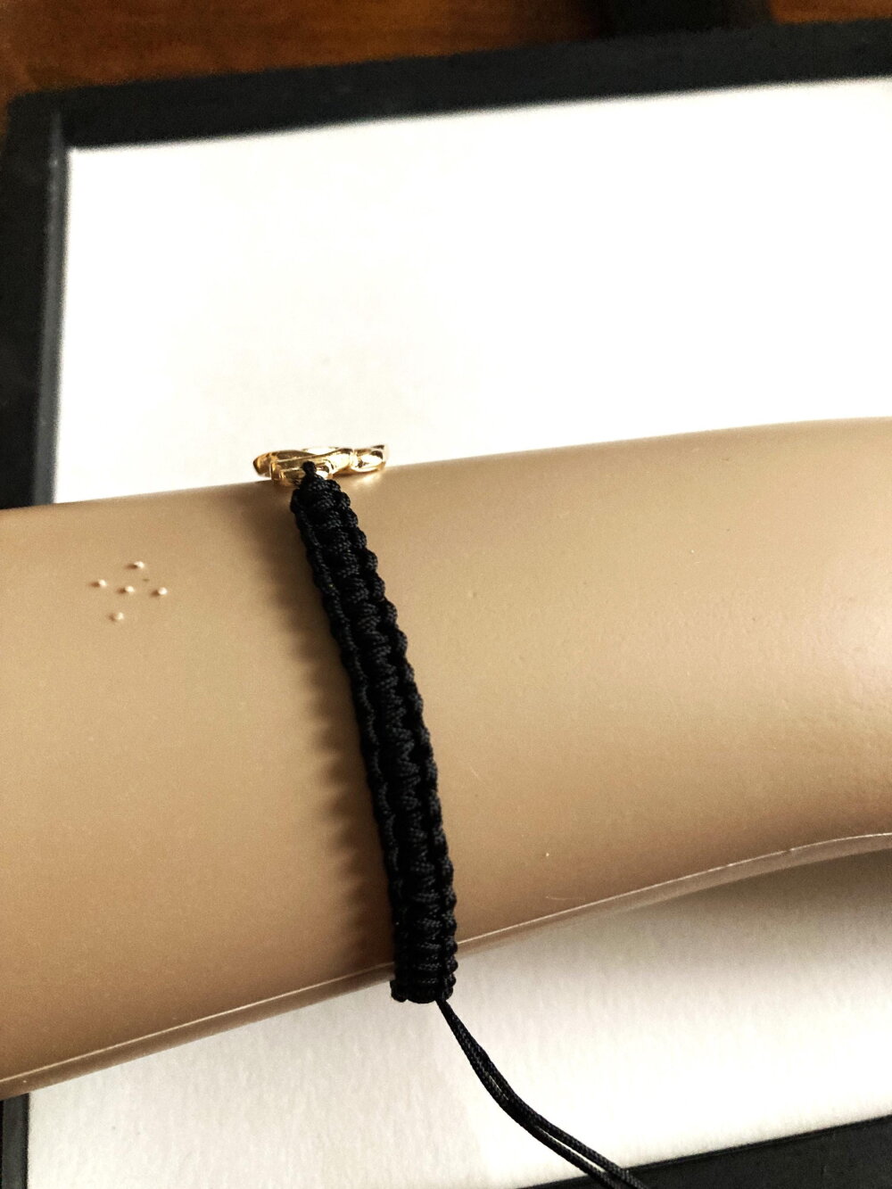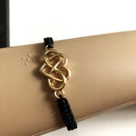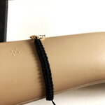 Bracelet coton tressé noir fin joli motif doré tendance Bijou homme ou femme
