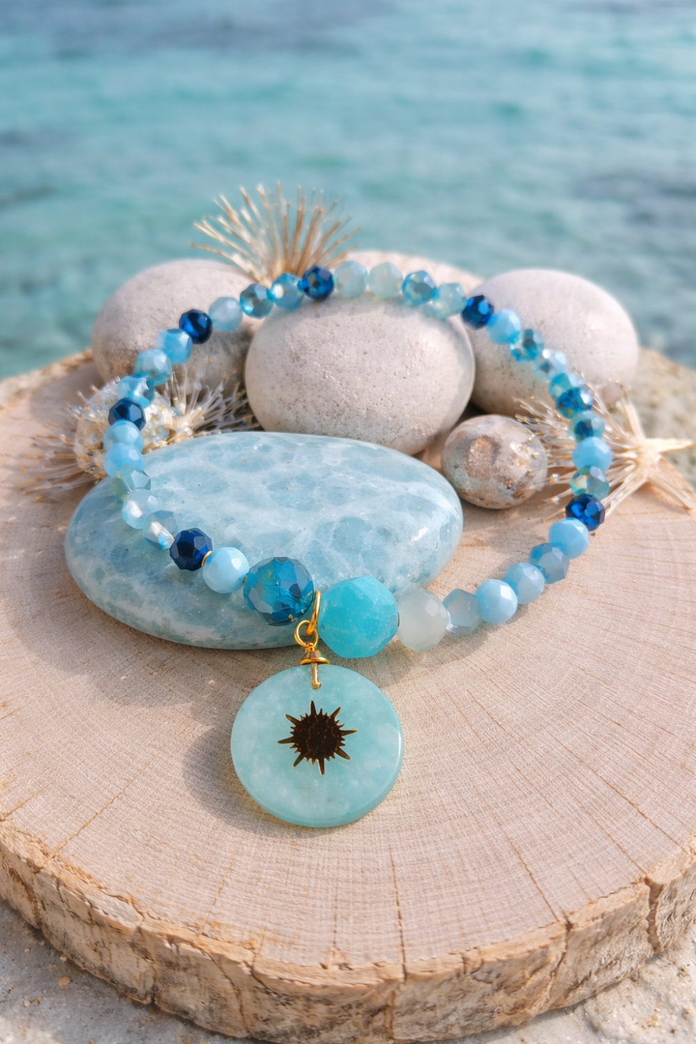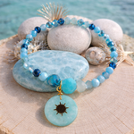 Laissez-vous séduire par le Bracelet Éclat de Joie ! 💎 Ce bracelet élastique de 17 cm, orné de perles aux magnifiques nuances de bleu, est conçu pour apporter légèreté, paix intérieure et joie au quotidien. Sa composition délicate est sublimée par une pierre et un pendentif en amazonite, une pierre douce et lumineuse qui invite à l’harmonie.