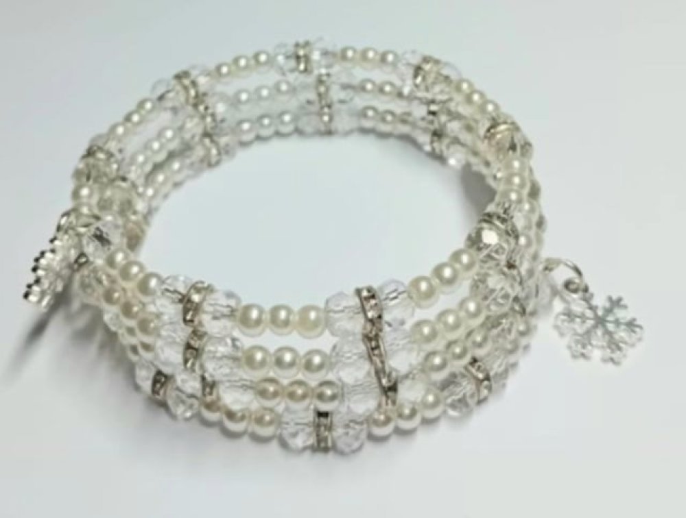 Un bracelet lumineux et pratique, monté sur fil en métal argenté à mémoire de forme qui s’ajuste seul, sans fermoir. Les cristaux facettés transparents de 6 mm offrent une brillance cristalline, rehaussée par des perles intercalaires scintillantes et de jolies breloques argentées pour une touche de fantaisie.