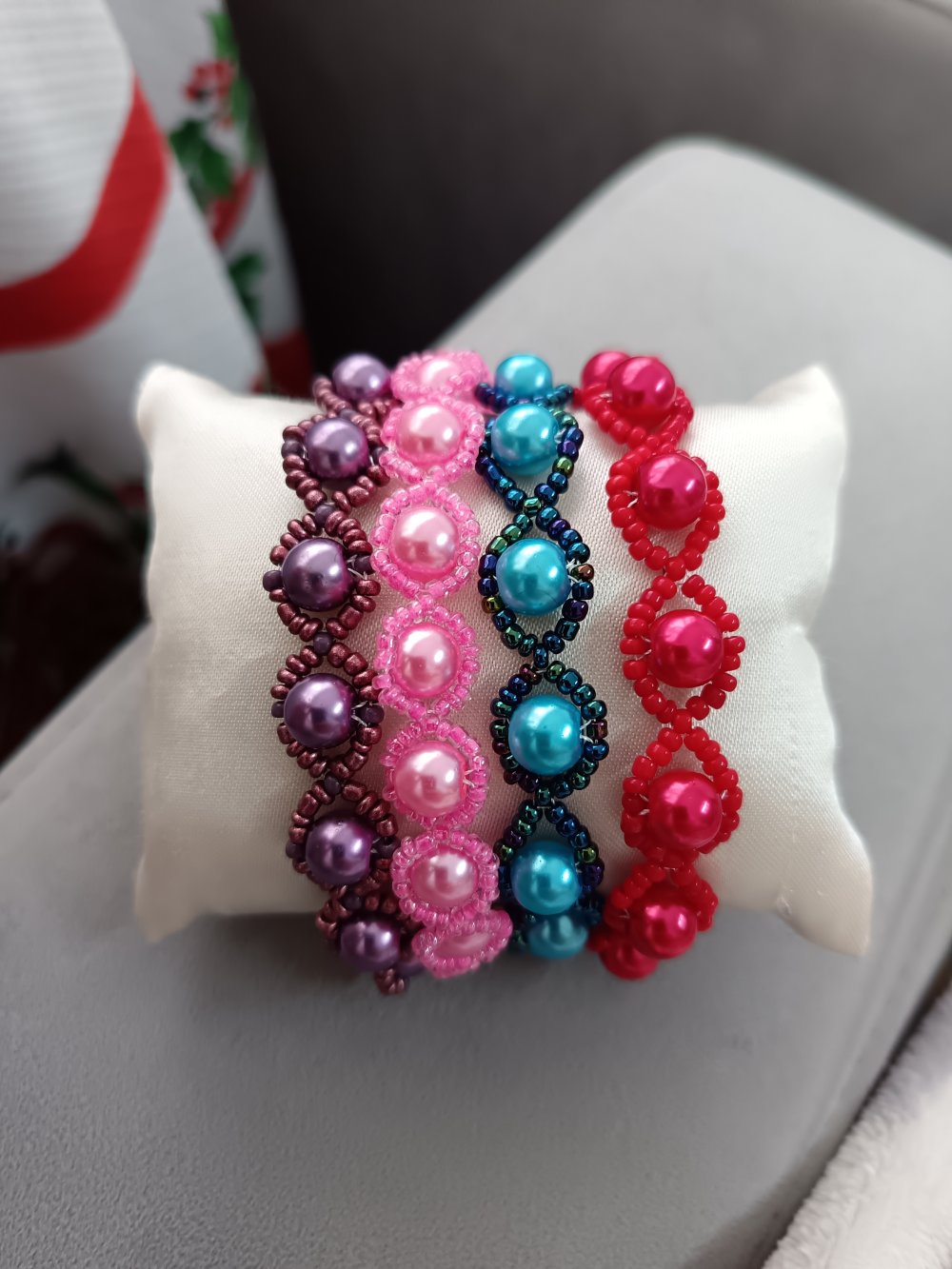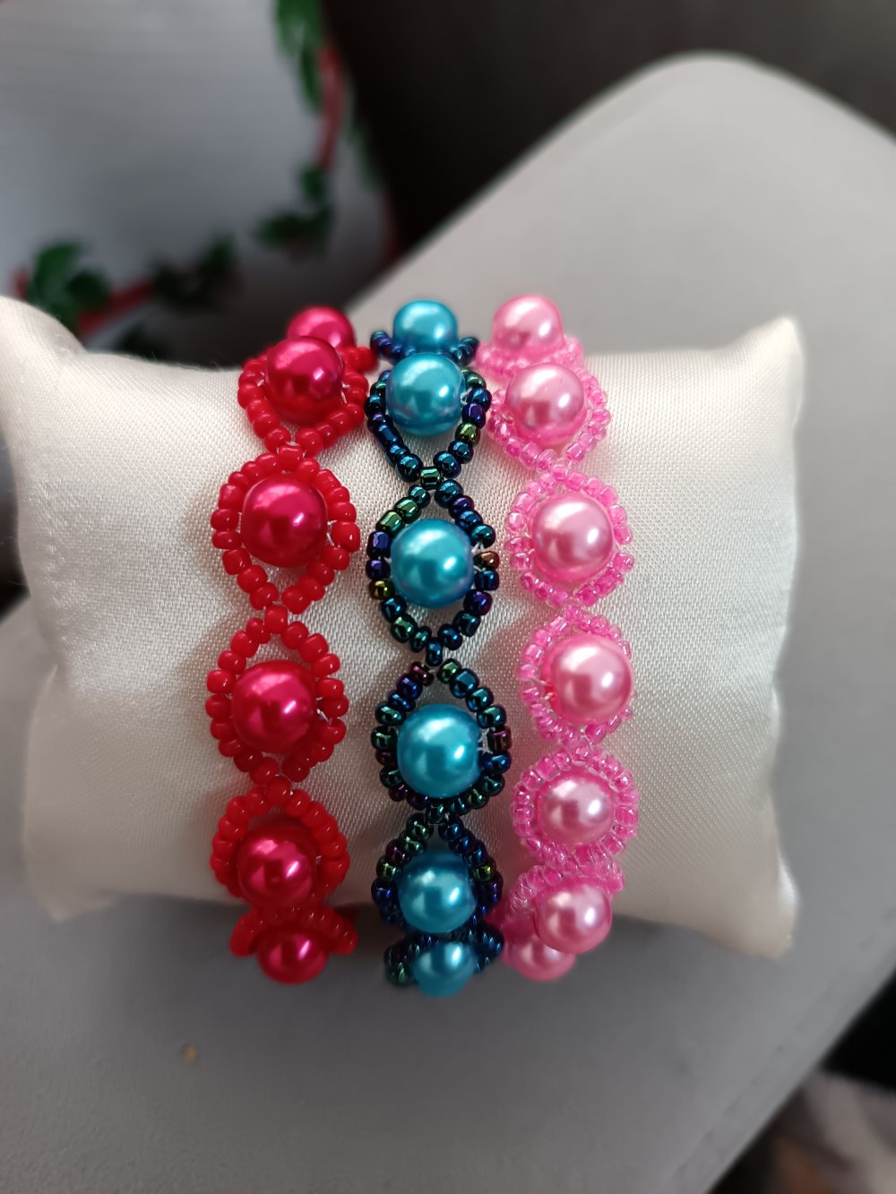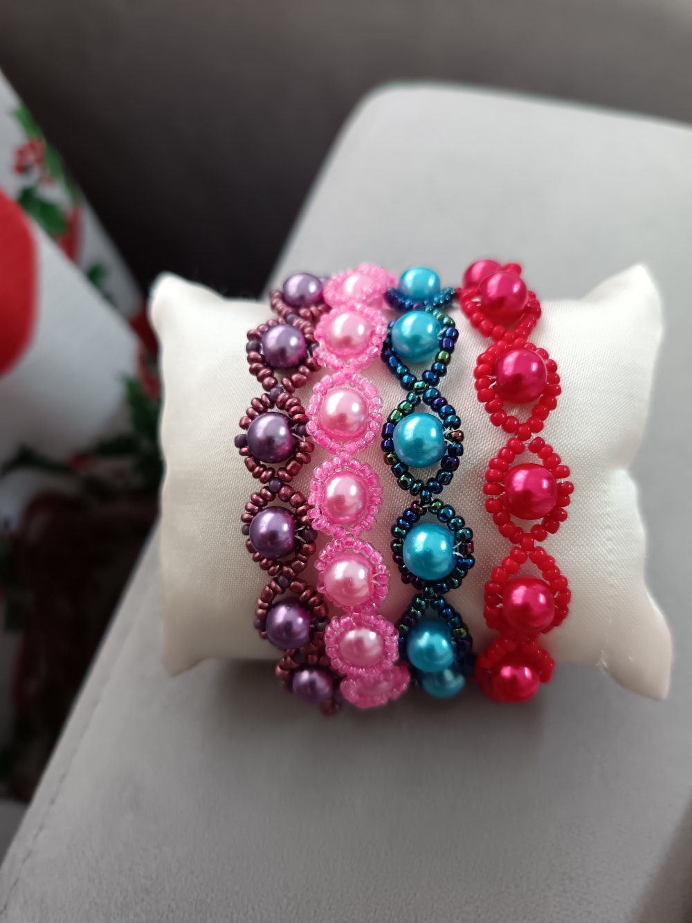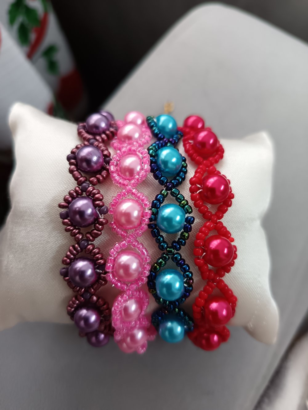 Découvrez un bracelet élégant et intemporel, entièrement tissé à l’aiguille et réalisé à la main avec soin. Chaque pièce est conçue avec des perles rondes entourées de mini-perles délicates, formant un motif raffiné et harmonieux.