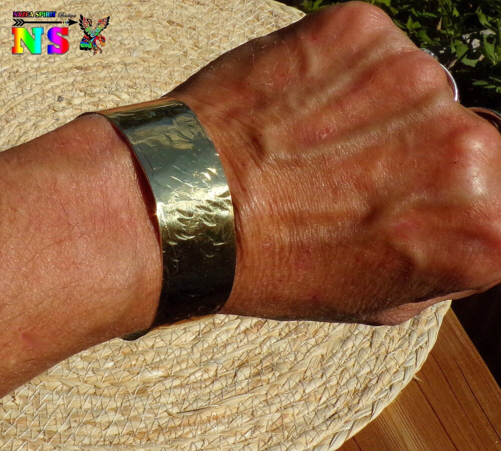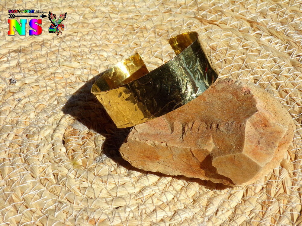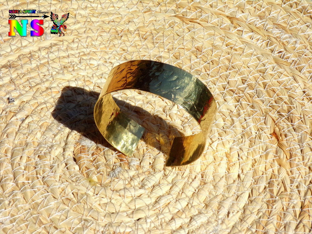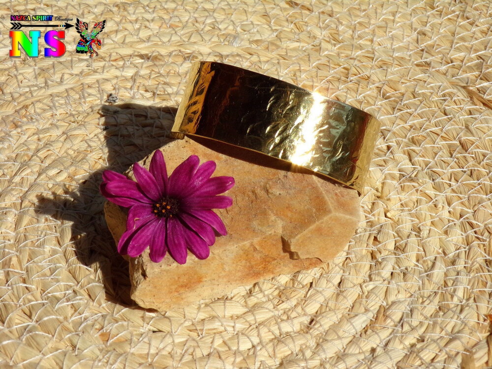 Bracelet Esclave Jonc Réglable en Laiton Doré Martelé - Bracelet Fait Main - Bijou Artisanal Création Unique - Bracelet Large Or Brillant