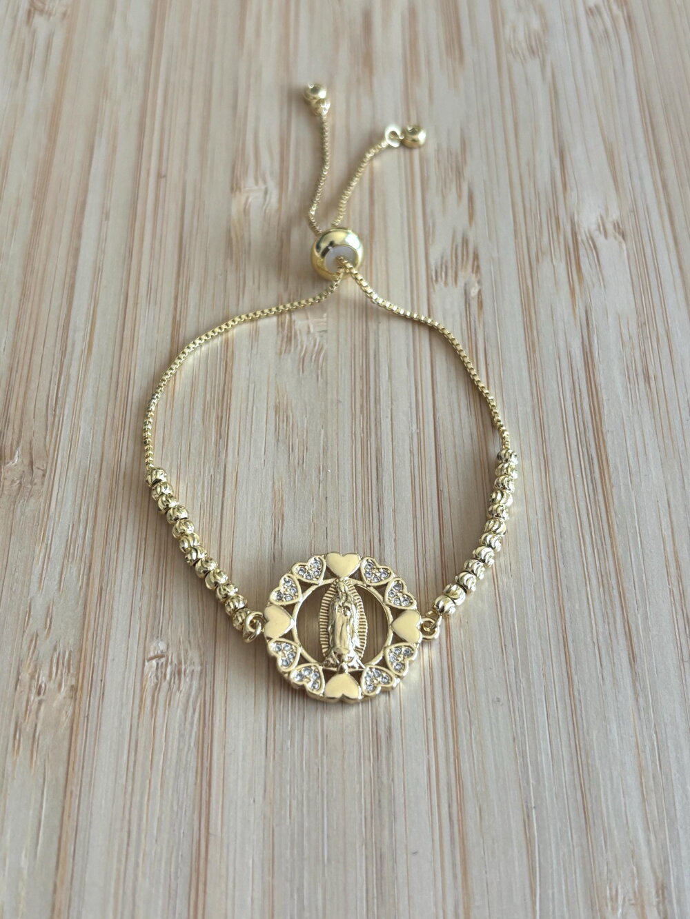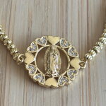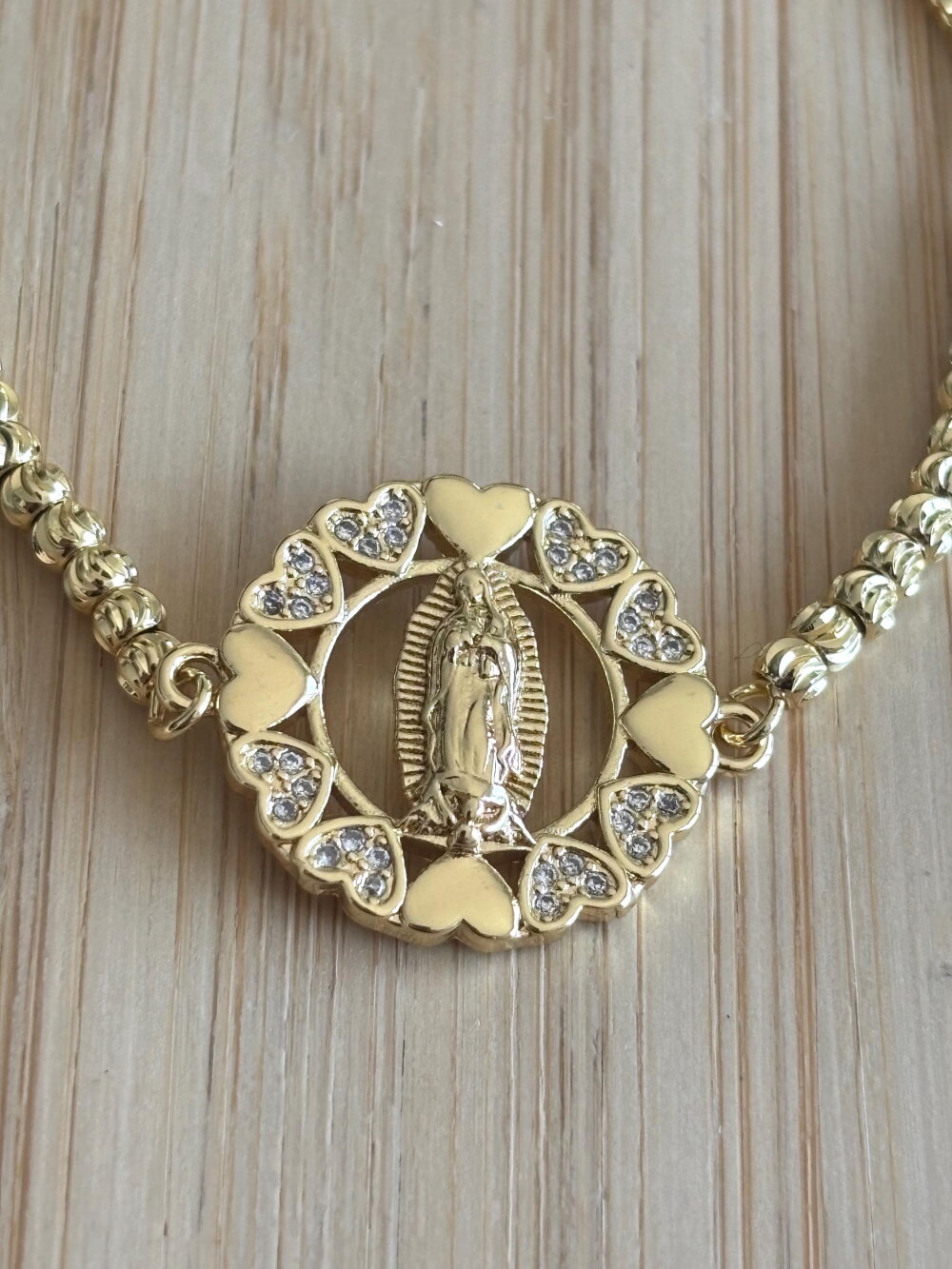 Bracelet fin Vierge Marie doré, acier inoxydable, cœurs et zircons scintillants, bijoux spirituel et porte bonheur, cadeau religieux,