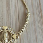 Motif Vierge Marie entourée de cœurs dorés et en zircon.