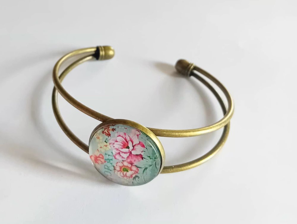 Cabochon : Verre avec motif floral