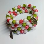 Les perles s’enroulent en spirale pour former un bijou souple et confortable, sublimé par deux charms métalliques en forme de feuilles, apportant une touche nature et poétique.