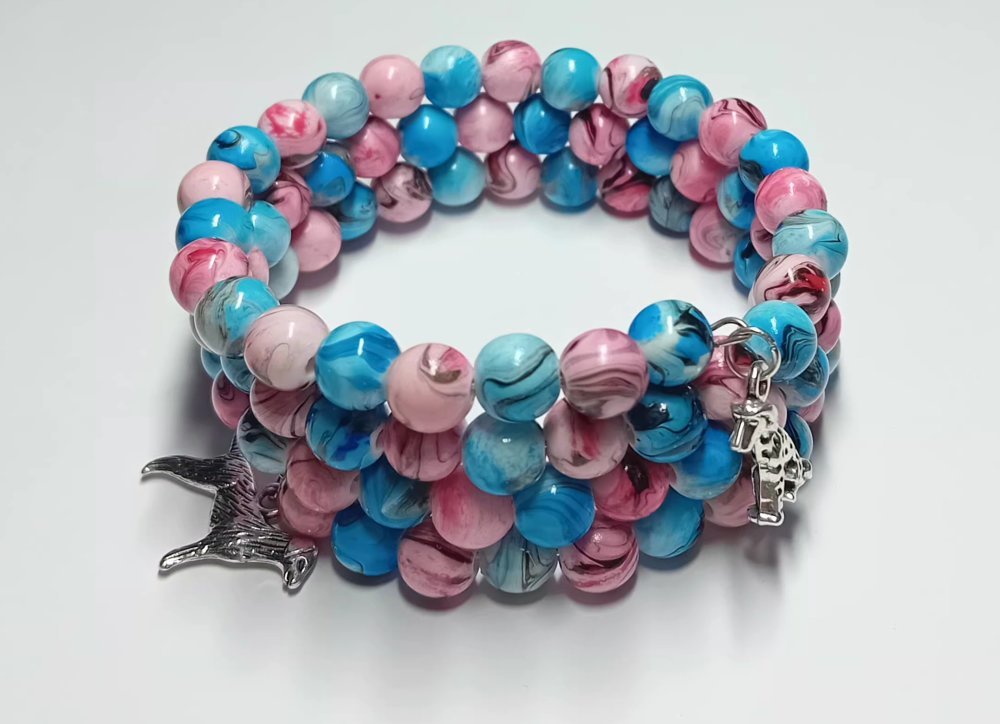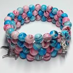 Bracelet "Lagon & Tendresse" composé de perles en verre de différentes teintes de bleu et de rose.