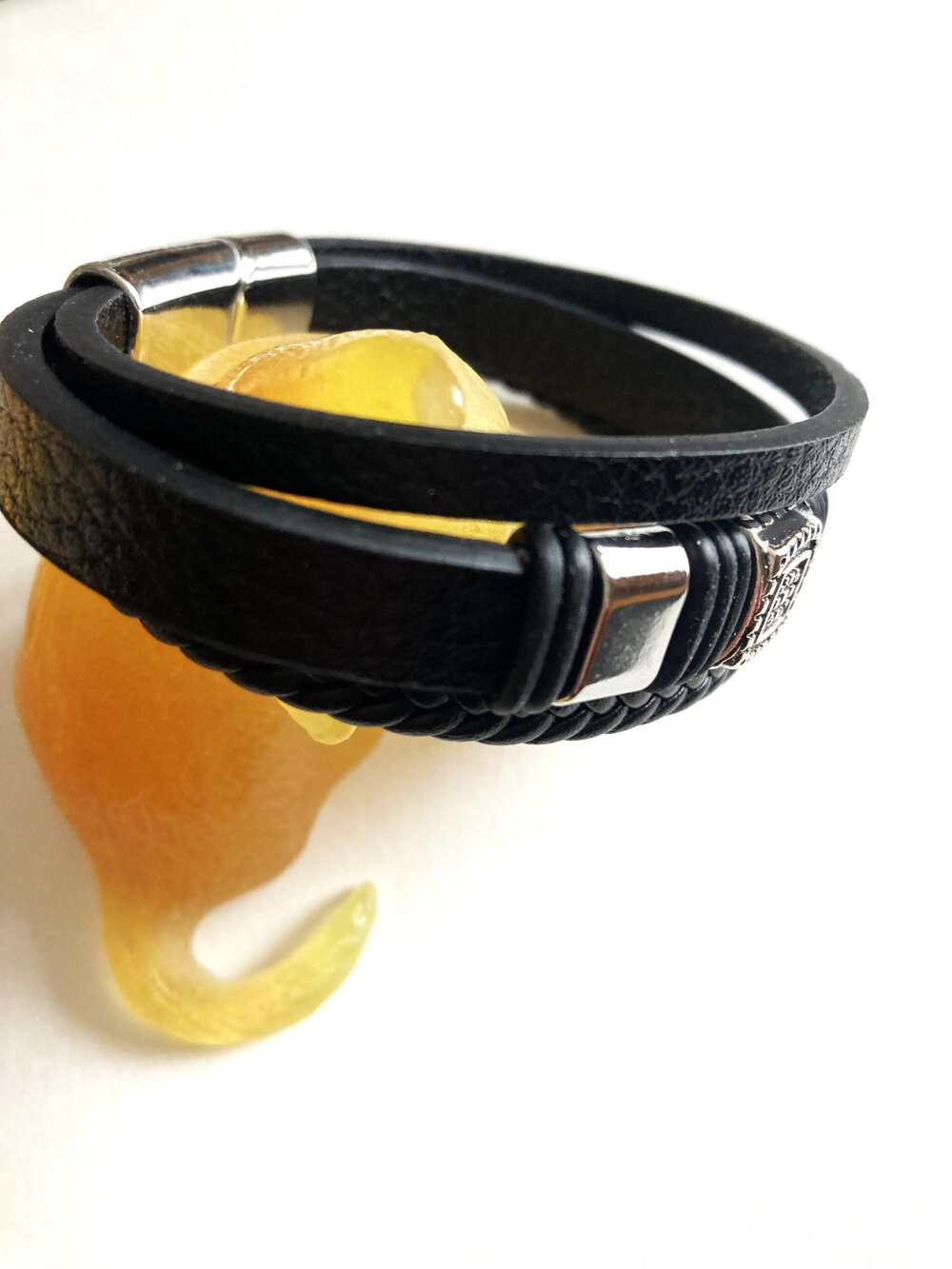 Bracelet noir 3 rangs fermoir magnétique tendance Bijou homme