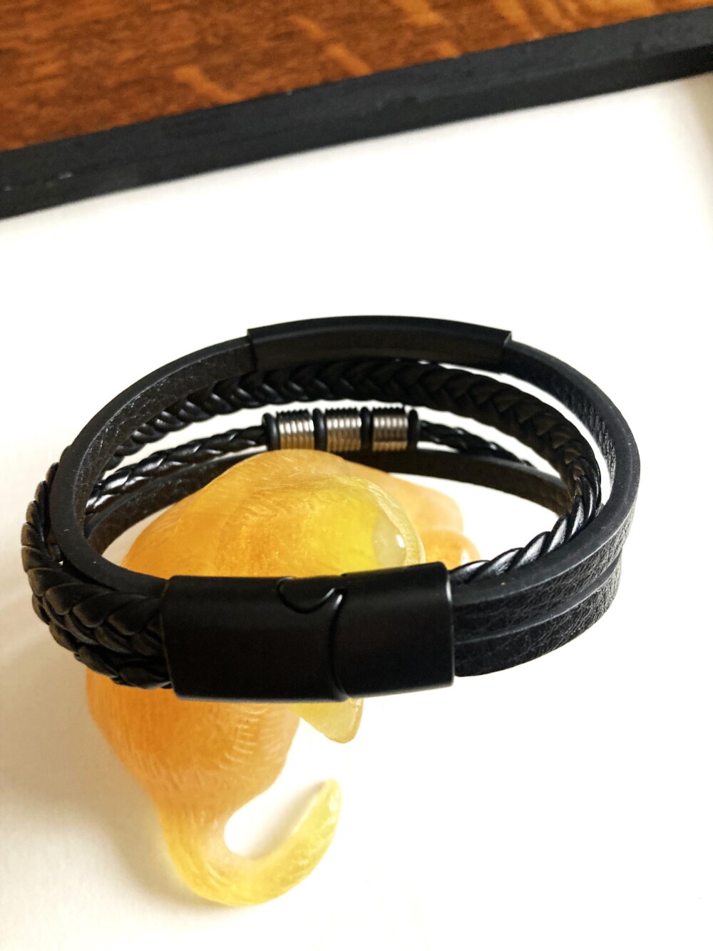 Bracelet noir 4 rangs fermoir magnétique tendance Bijou homme