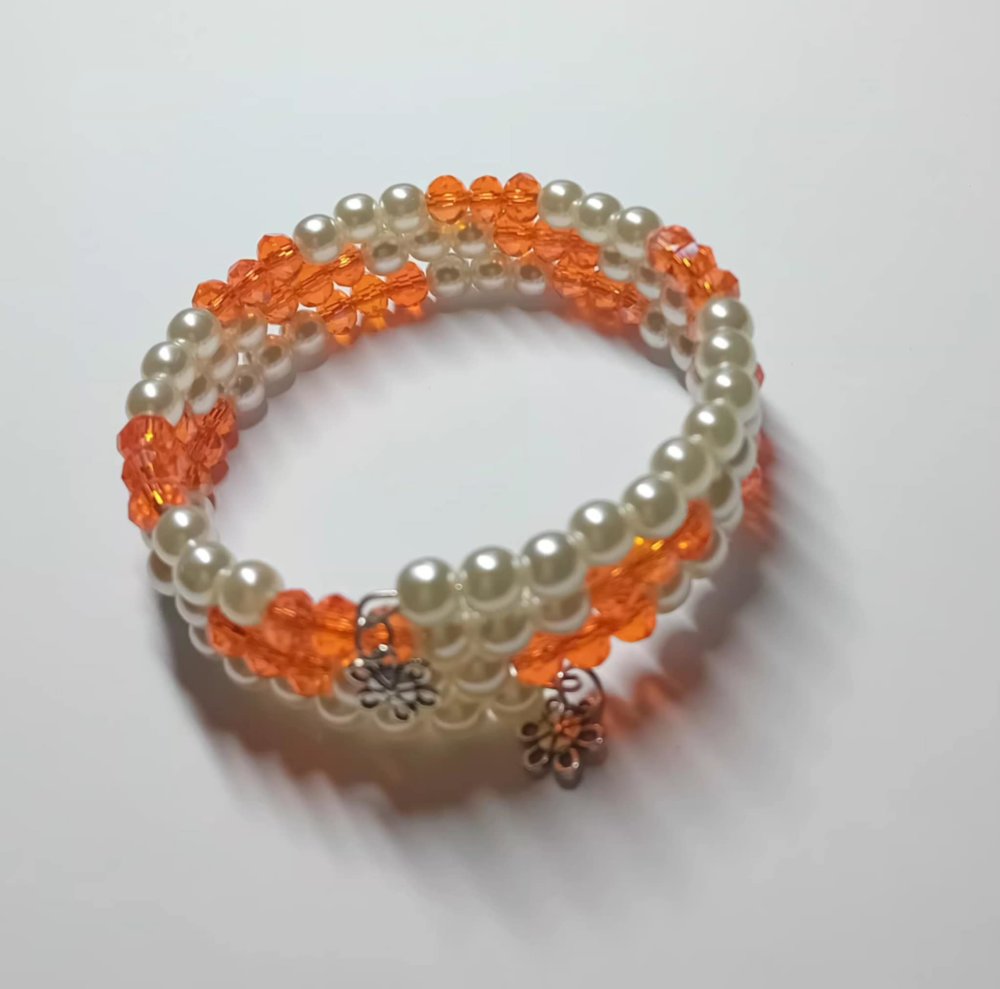 🧡 Perles : Cristaux facettés orange + perles nacrées ivoire