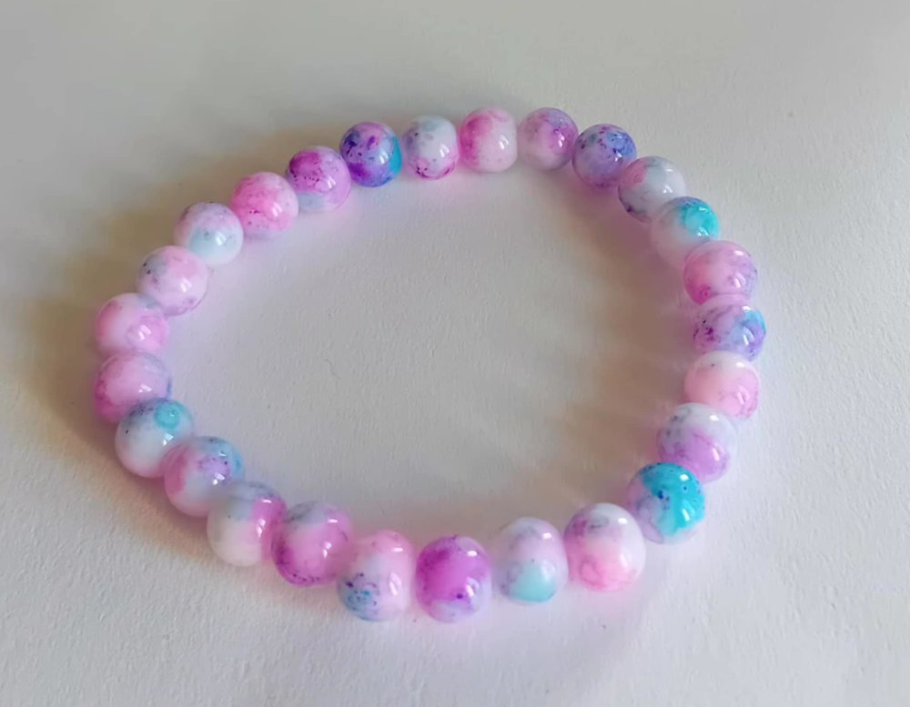Matériaux : Perles synthétiques marbrées, fil élastique