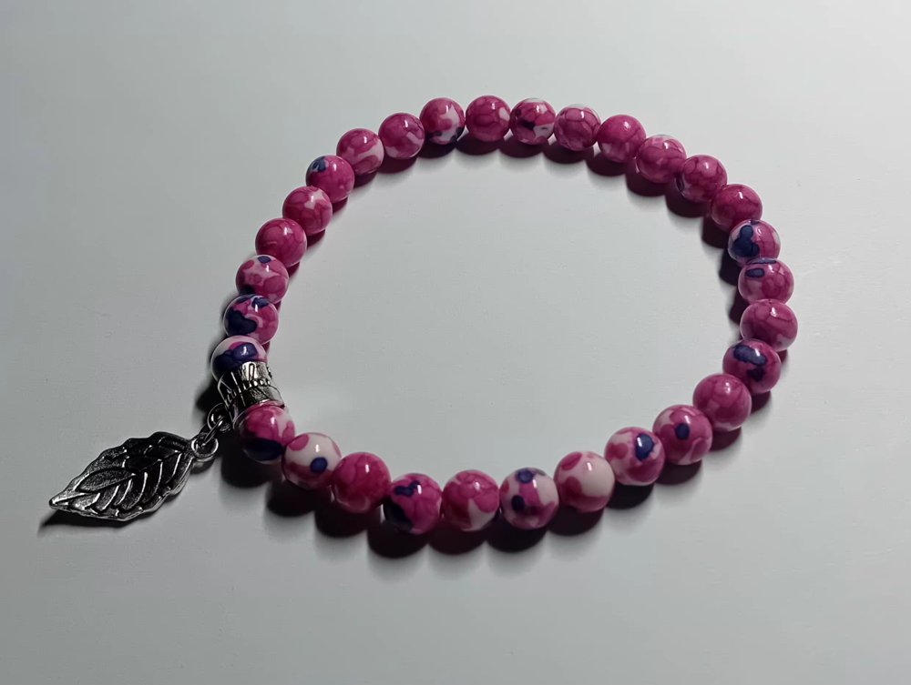 Perles : Perles lisses aux nuances de rose fuchsia, rose pâle et blanc marbré.