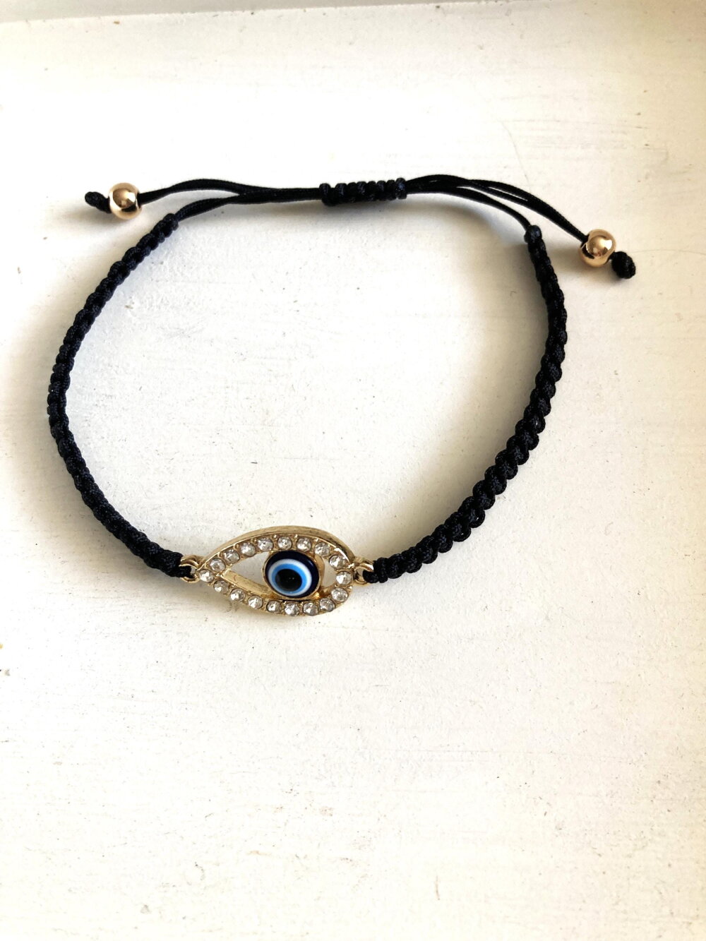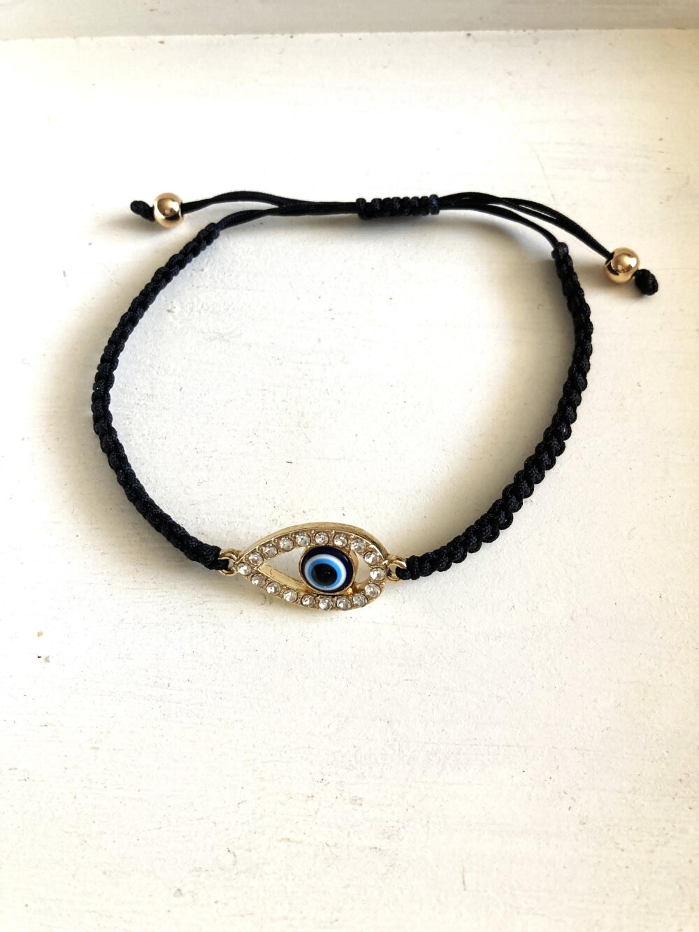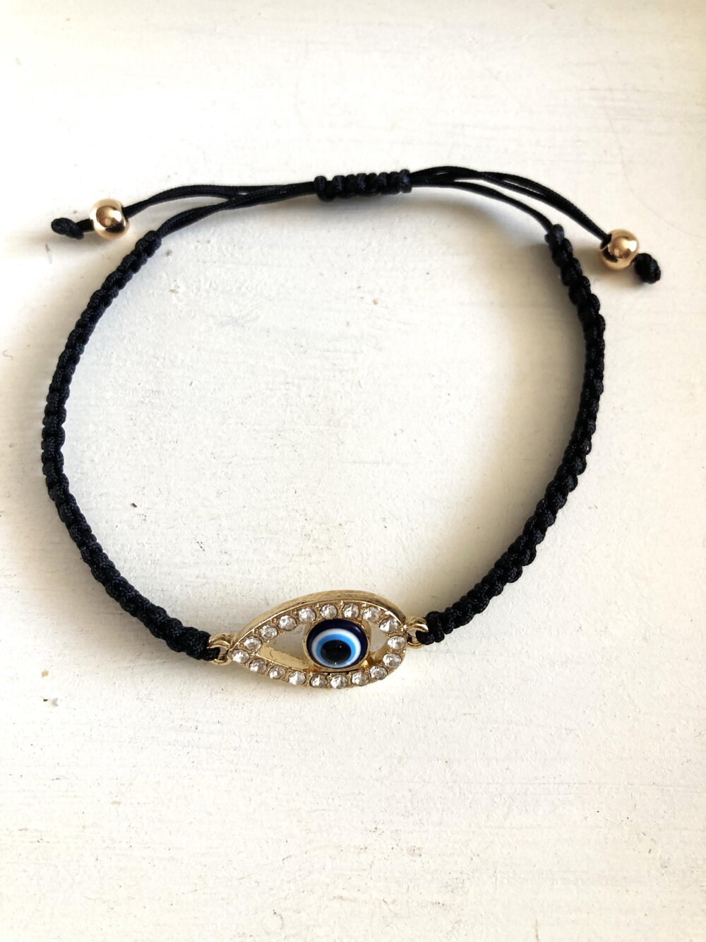 Bracelet réglable porte bonheur, grec, coton tressé noir, tendance, bijou homme ou femme.