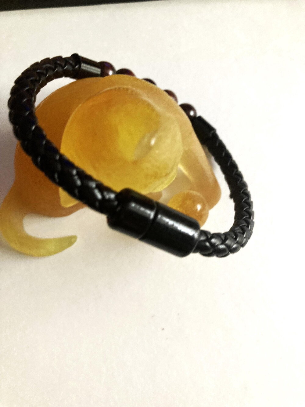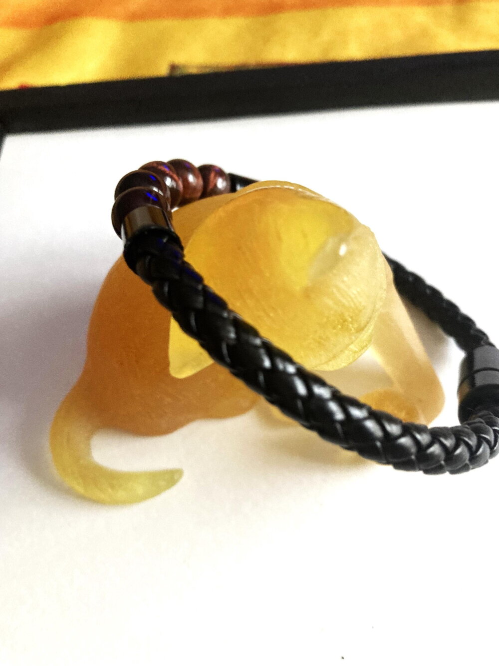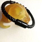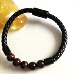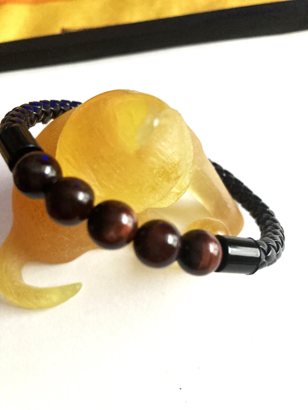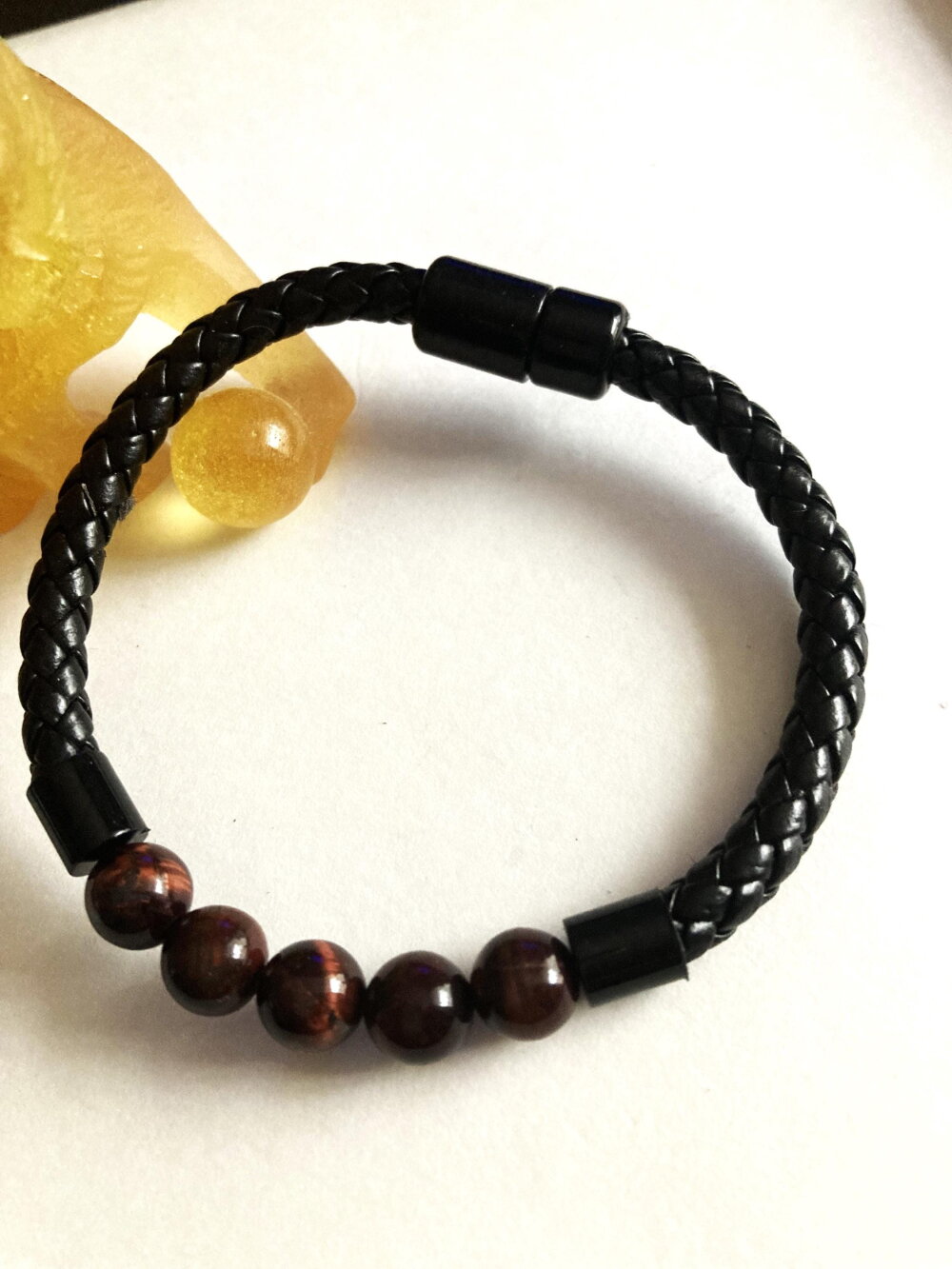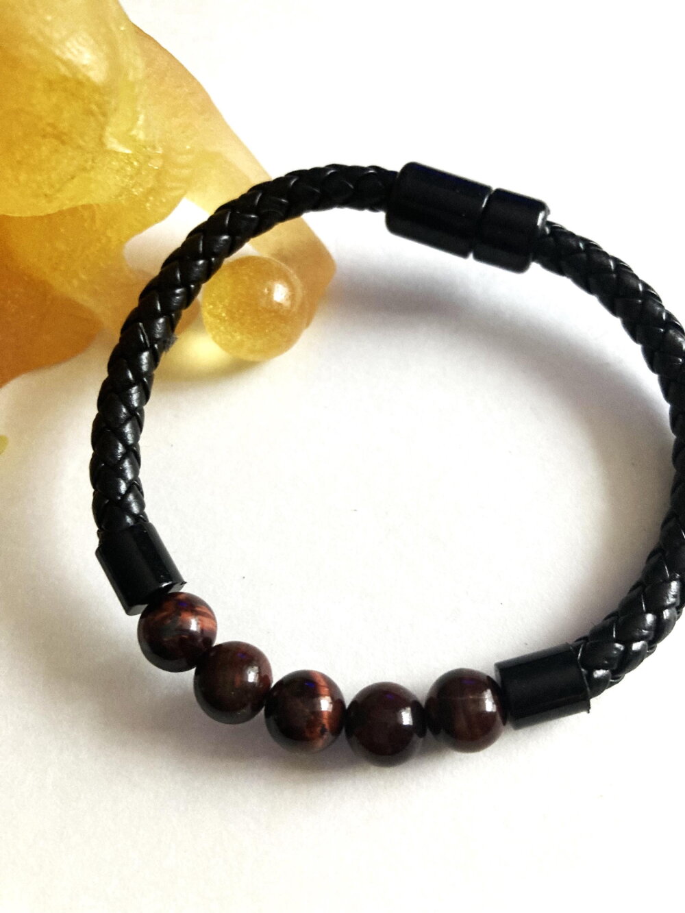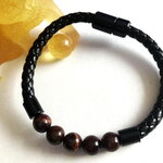 Bracelet tressé noir perles oeil de tigre fermoir magnétique Bijou homme