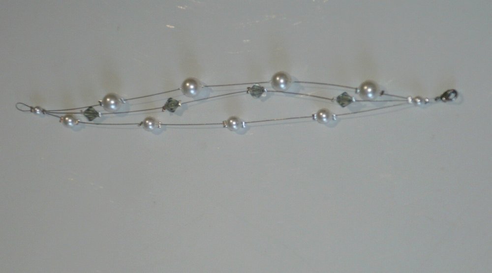 Fabriqué à la main, les bijoux sont surtout fait avec du fil câblé ou nylon, les perles sont en cristal de swarovski, verre de bohème.
