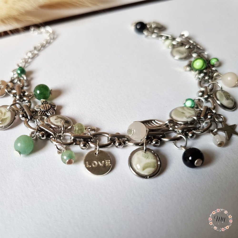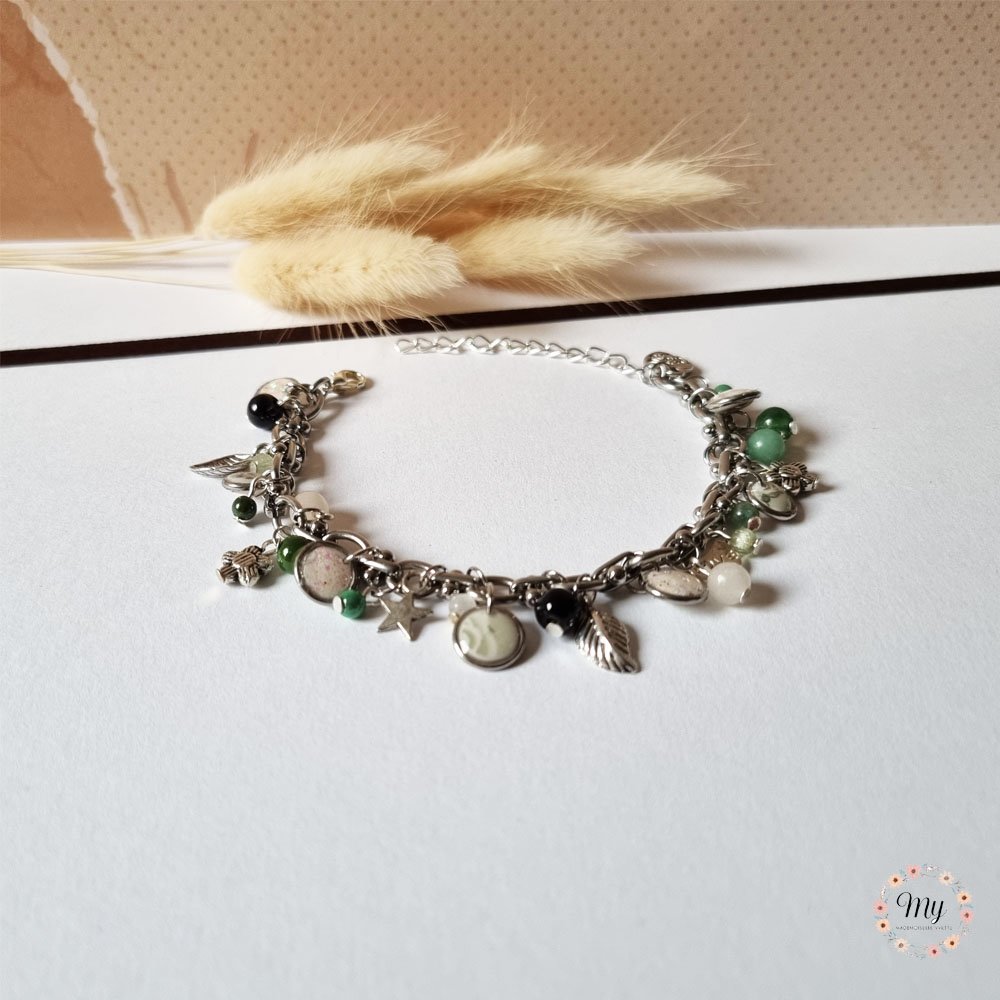 Bracelet à breloques - création artisanale unique en polymère & acier inoxydable