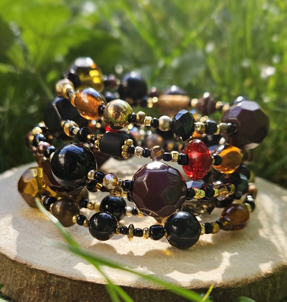 Ce bracelet de la Collection Bohème est une invitation à porter au poignet les couleurs profondes de l’automne. Les perles noires se mêlent aux dorés lumineux, aux bruns terreux et aux rouges flamboyants, comme les feuilles qui dansent dans le vent et réchauffent les journées plus fraîches.