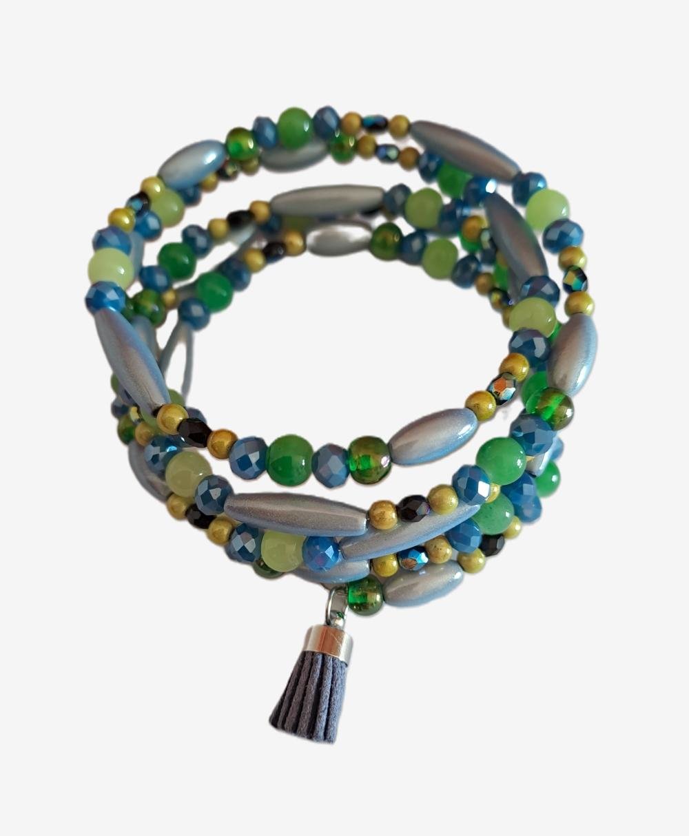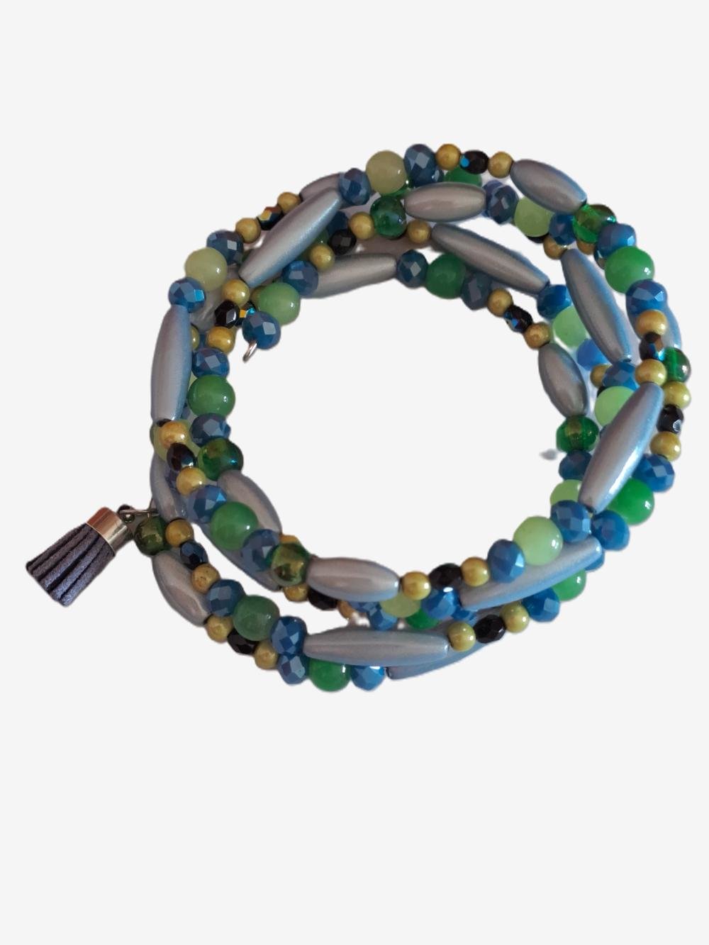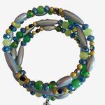 Création unique : bracelet composé de perles de verre, de cristal, de perles magiques monté sur un fil en acier à mémoire de forme.