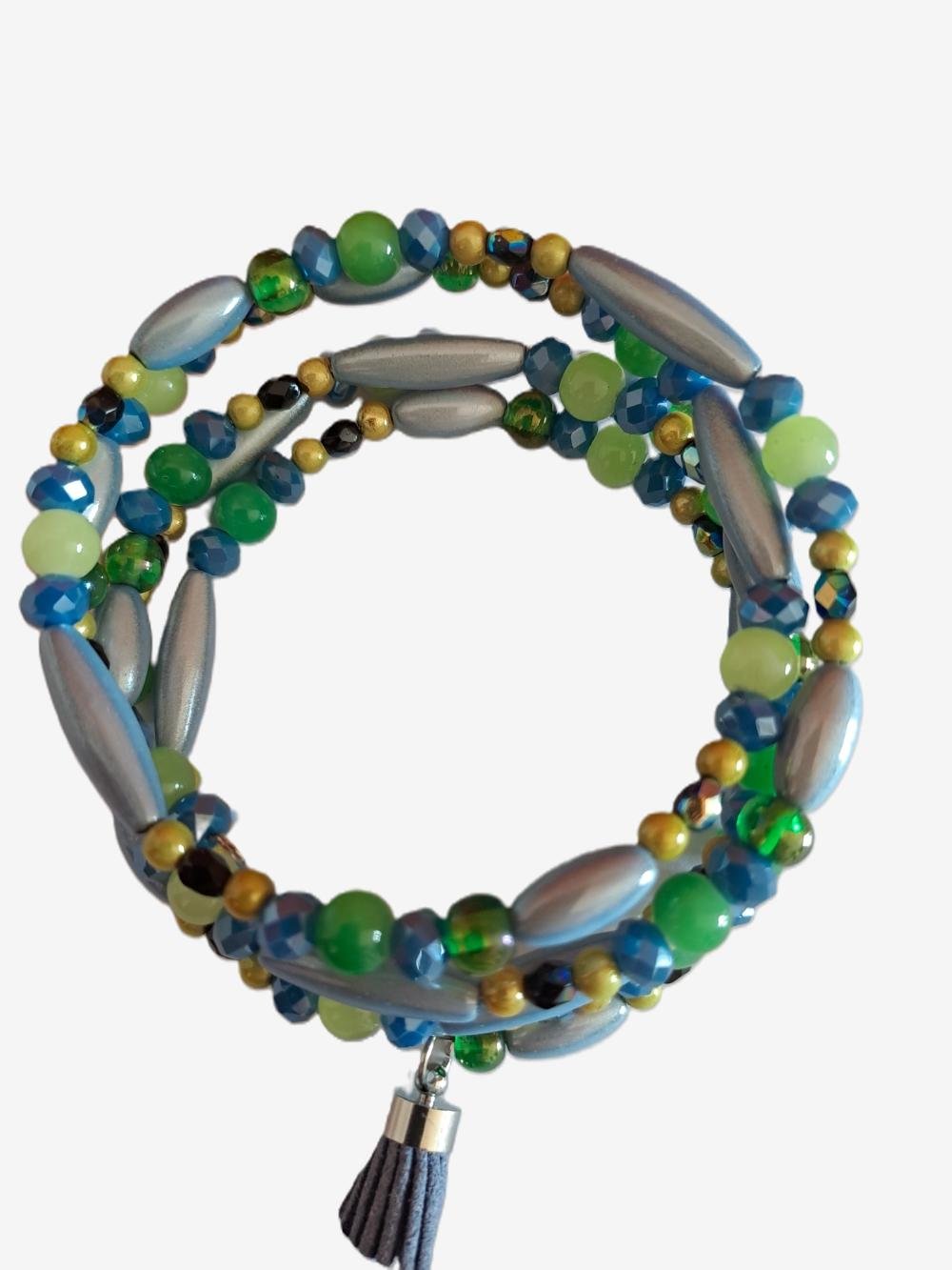 Ce bracelet est une pièce unique, composée avec soin,  d'une façon harmonieuse, il  égayera vos tenues.
