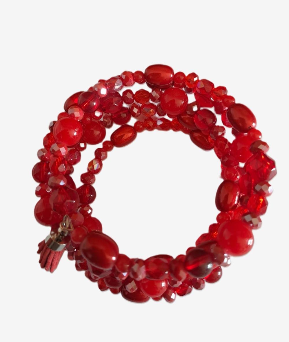 Création unique : bracelet composé de perles de verre, de cristal, de perles magiques monté sur un fil en acier à mémoire de forme.