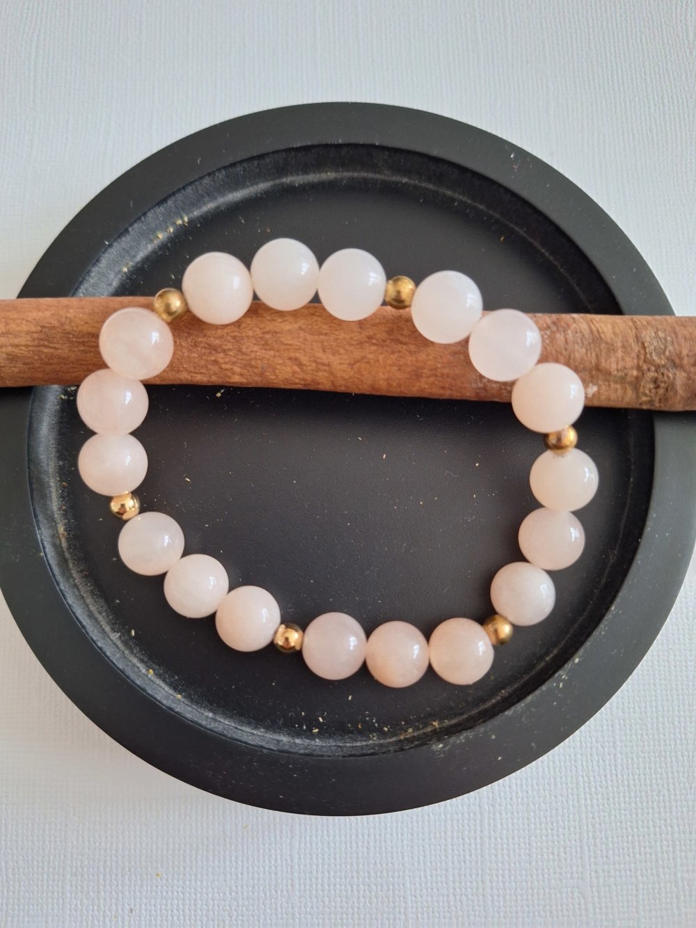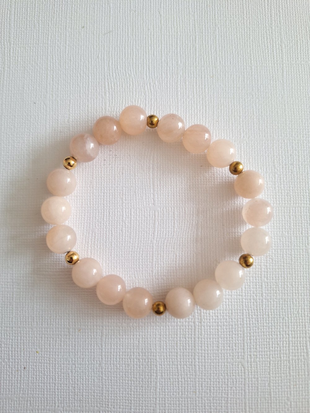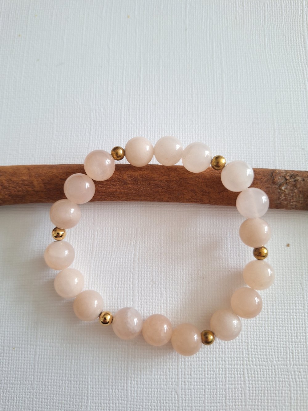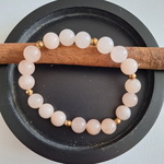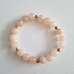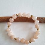 Bracelet avec 18 perles (10mm) en agate beige rosé et 6 perles dorés (4mm)