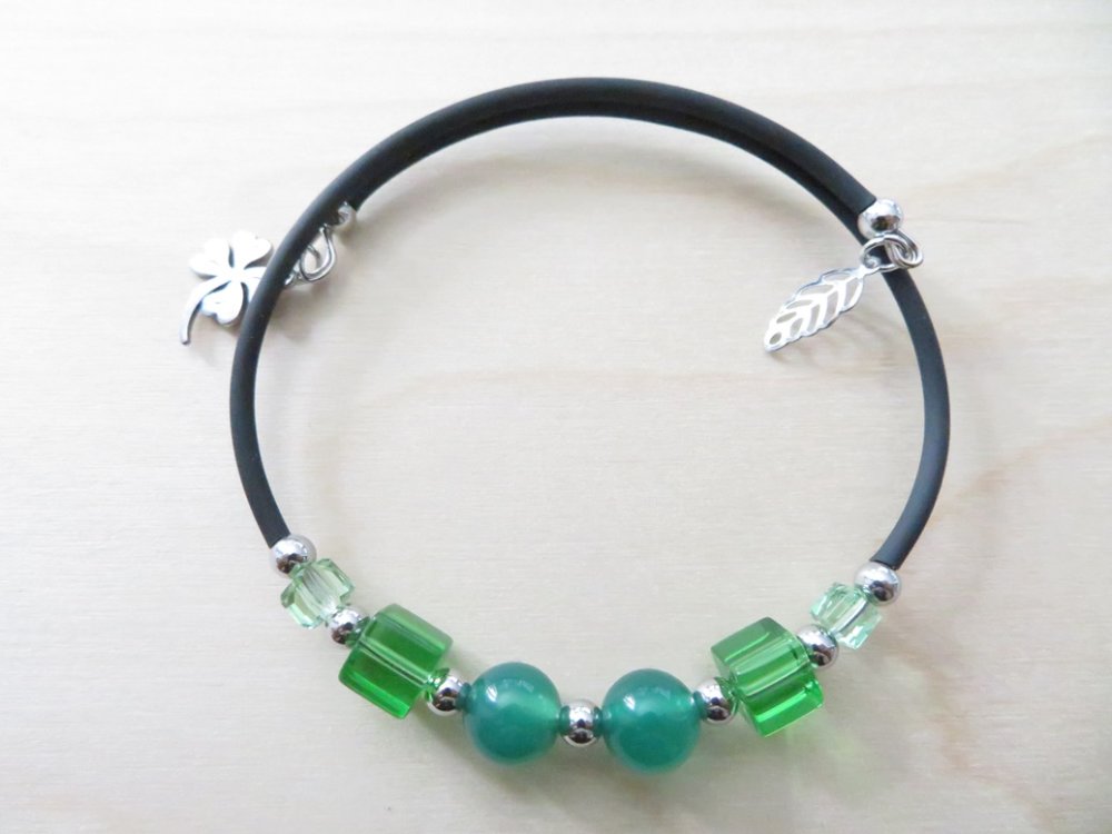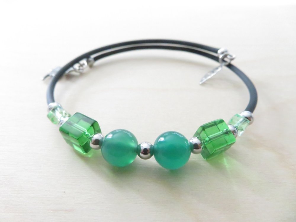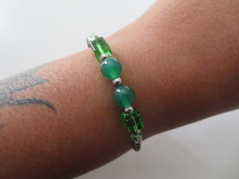 Bracelet en pierres naturelles Agate verte avec fil mémoire