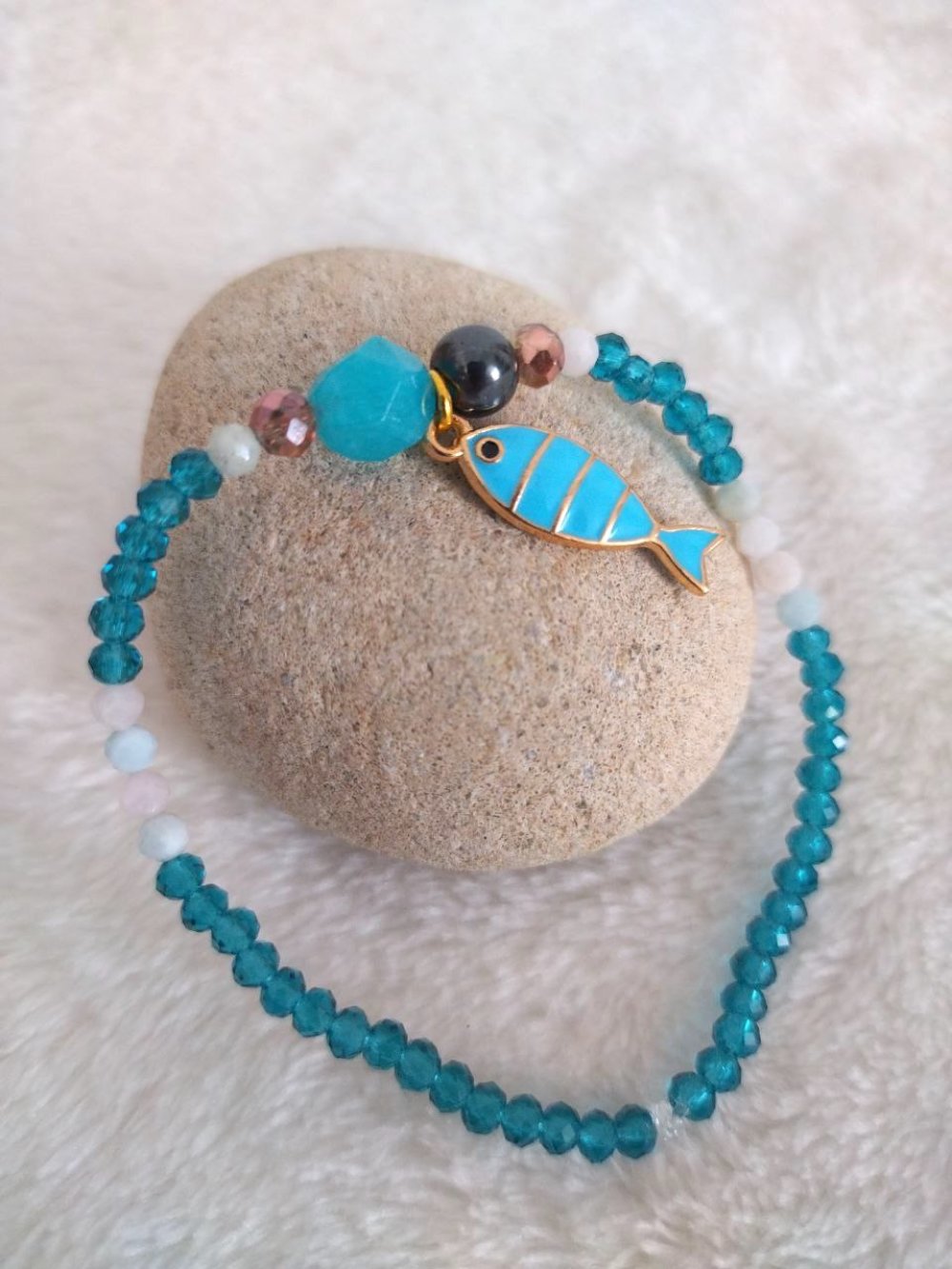 🌊 3️⃣Bracelet Amazonite & Poisson – Élément Eau