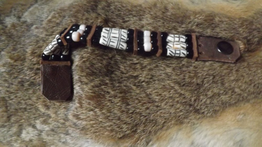 Bracelets - chokers (tours de cou) - cuir, os et perles de verre