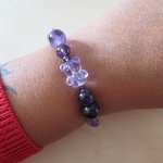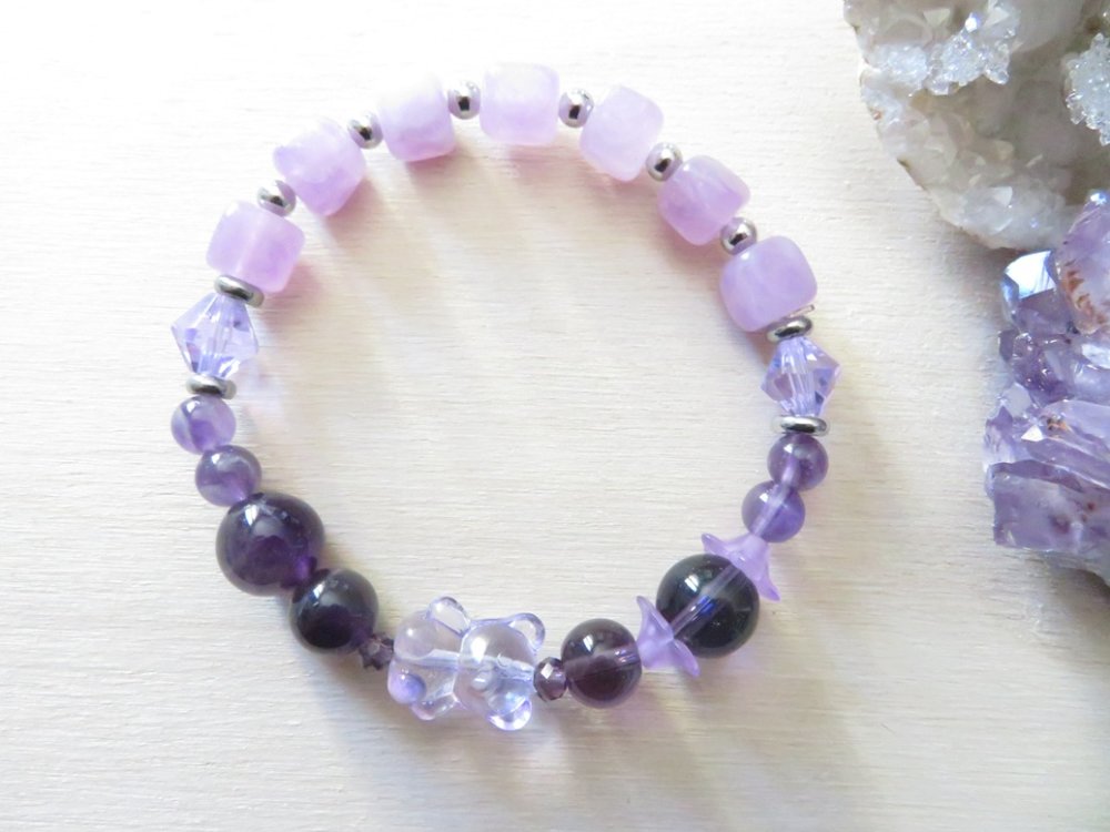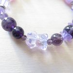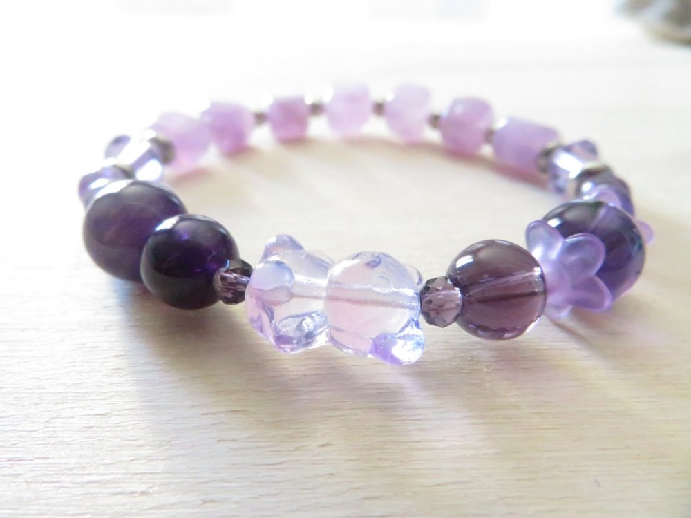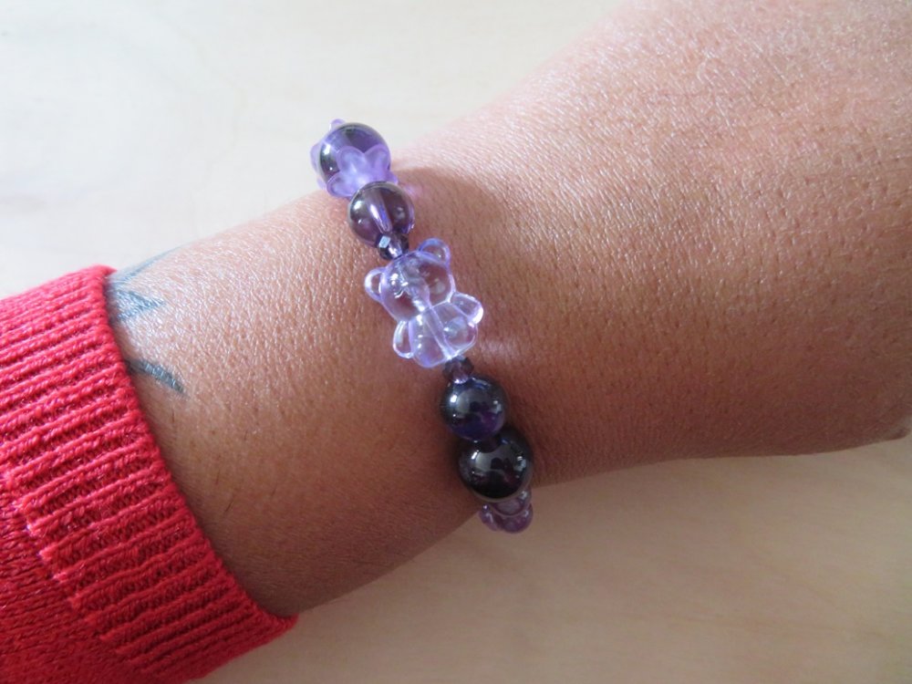 Bracelet en pierres naturelles Améthyste, perles et ourson en verre violet