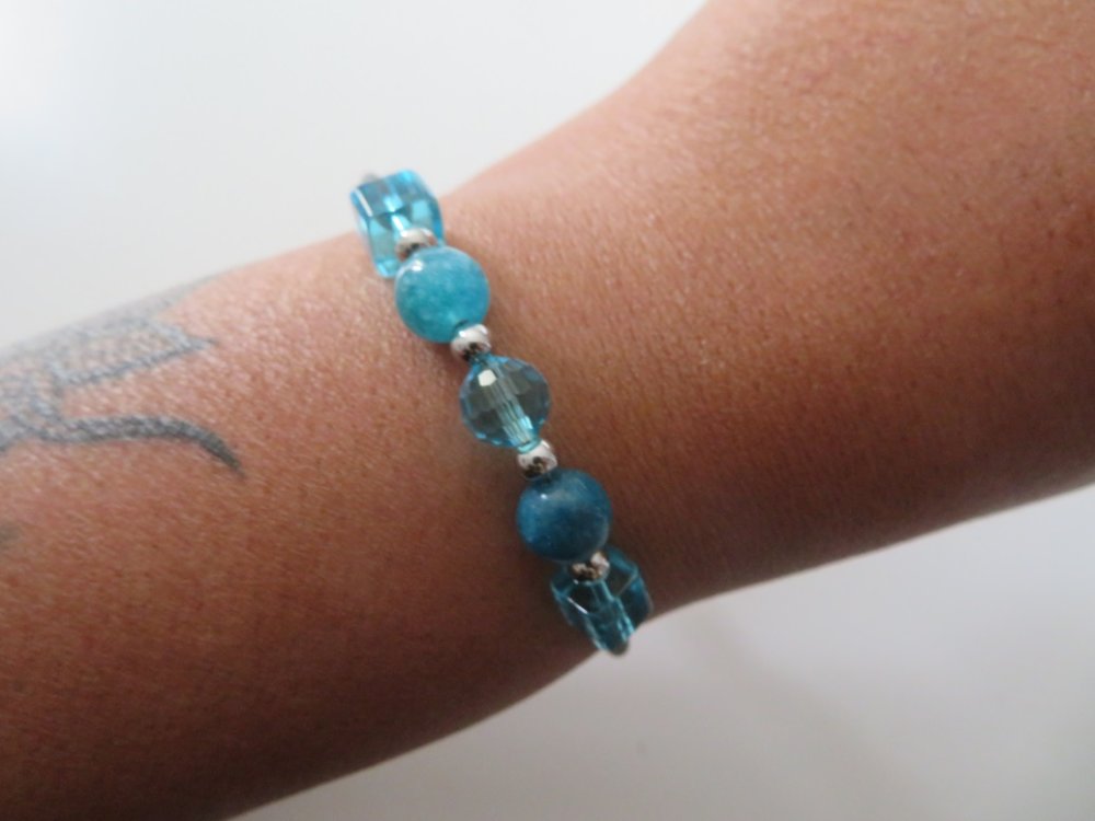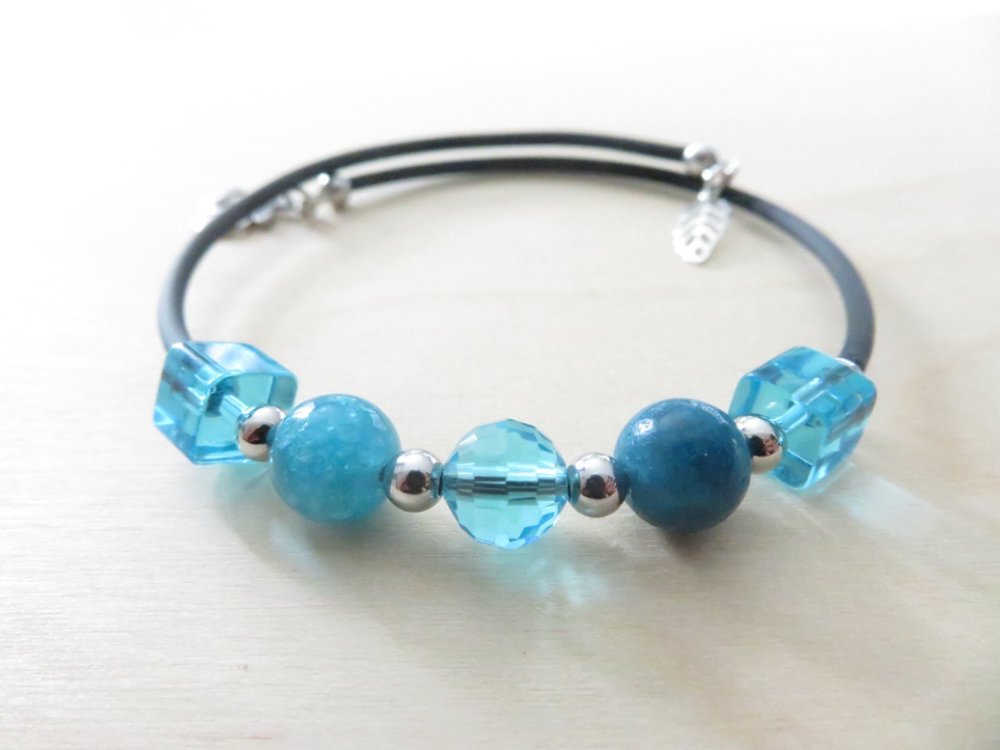 Bracelet en pierres naturelles Apatite bleue avec fil mémoire