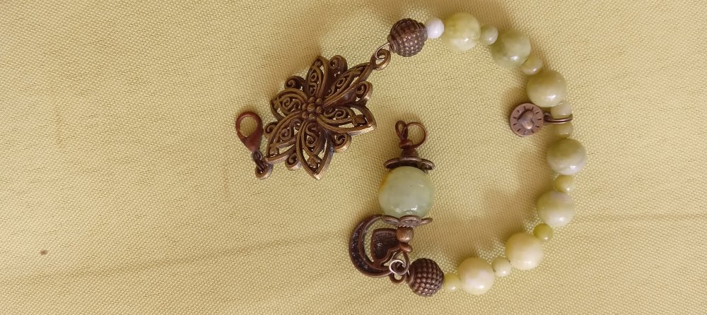 Bracelet avec jadeite sur le fil métallique qui garde sa forme