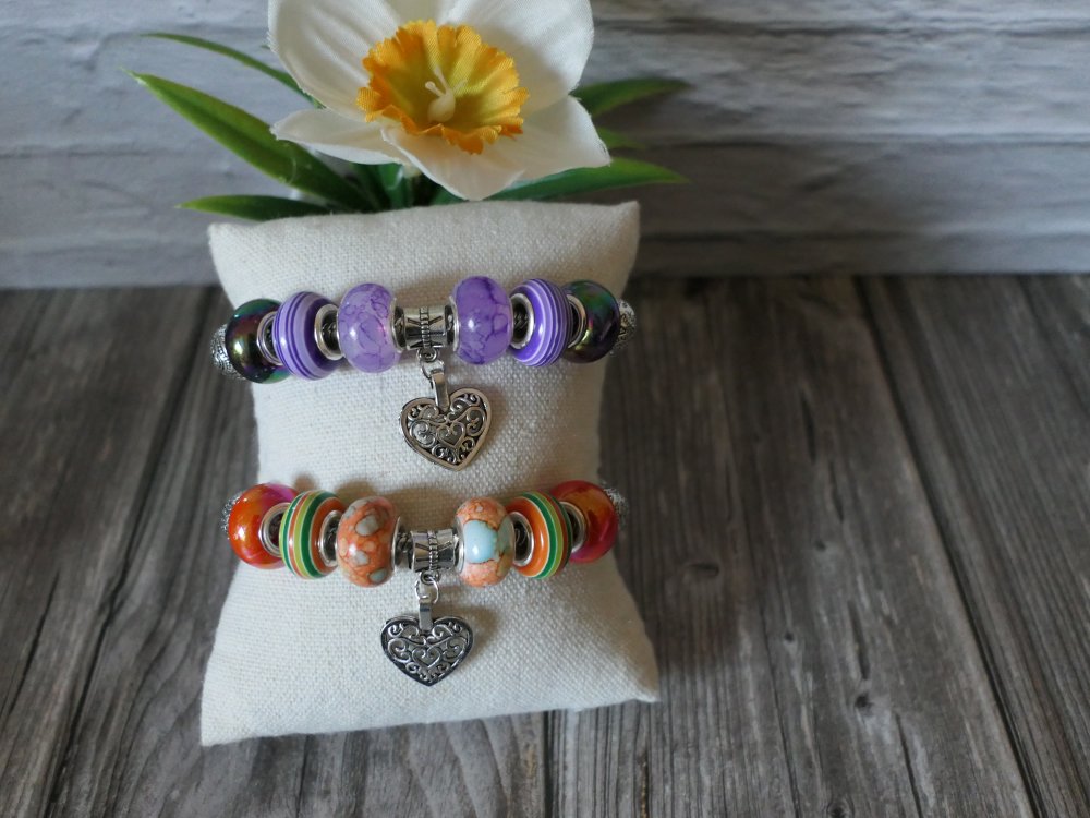 Bracelet ajustable chaîne serpent avec perles européennes – Violet ou orange