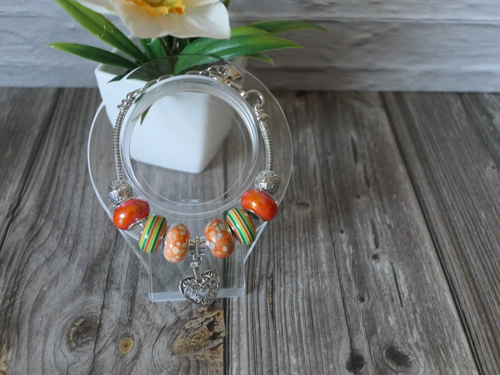 🔹Bracelet ajustable perles européennes | Bracelet chaîne serpent 16 cm + rallonge 5 cm |Violet ou orange